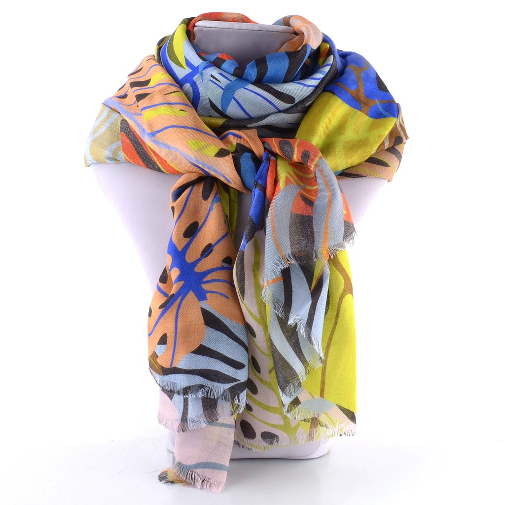 Viskózový šál s barevným motivem listí.