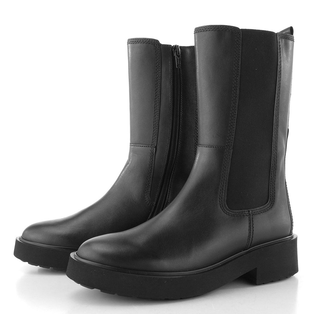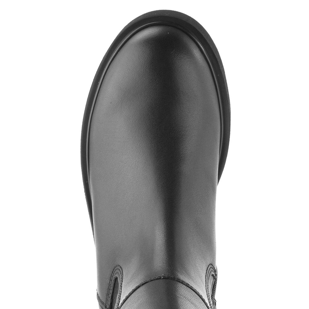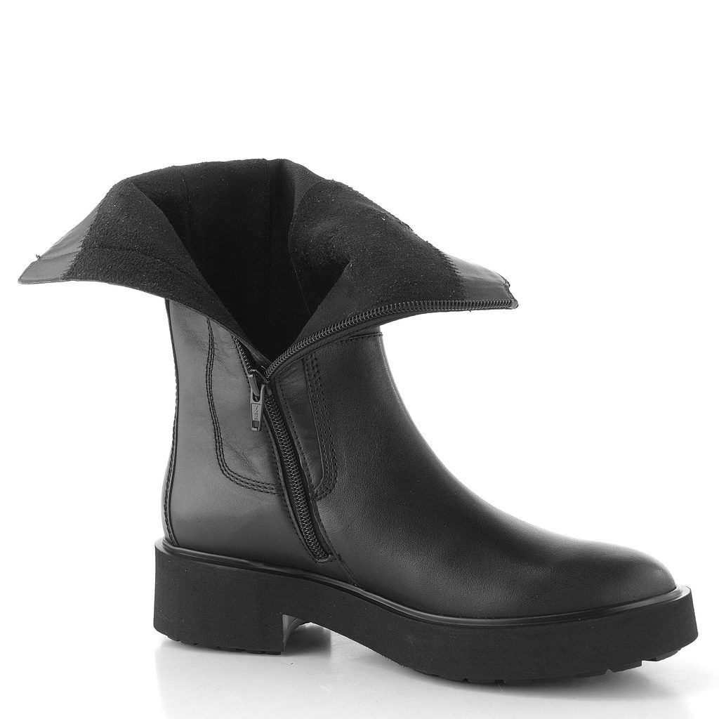Dámský vyšší kotník v černé barvě se širokou pruženkou na vnější straně a funkčním zipem na vnitřní straně.