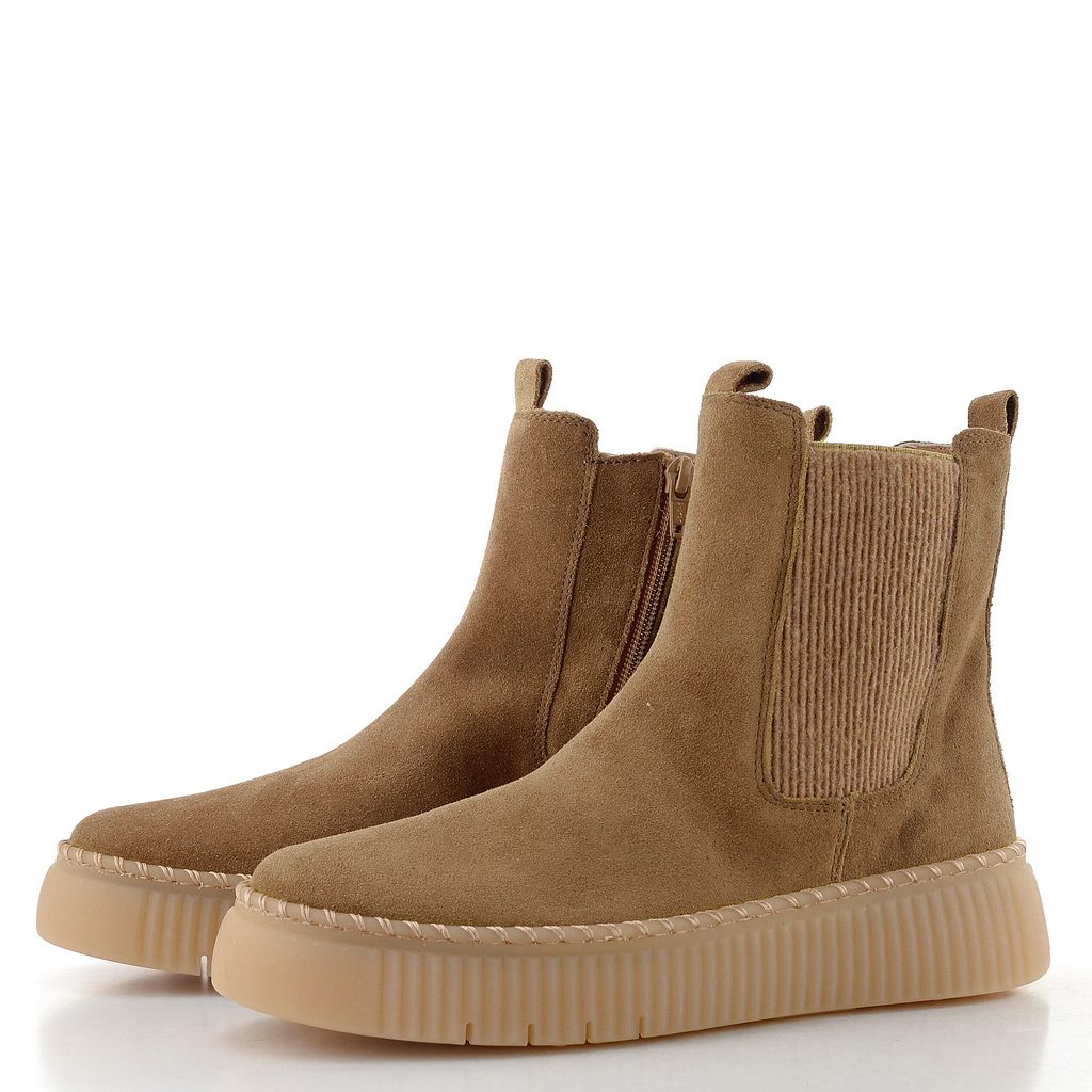 Dámský semišový nevyteplený kotník na platformě, se širokou pruženkou na vnější straně a vnitřním zipem.