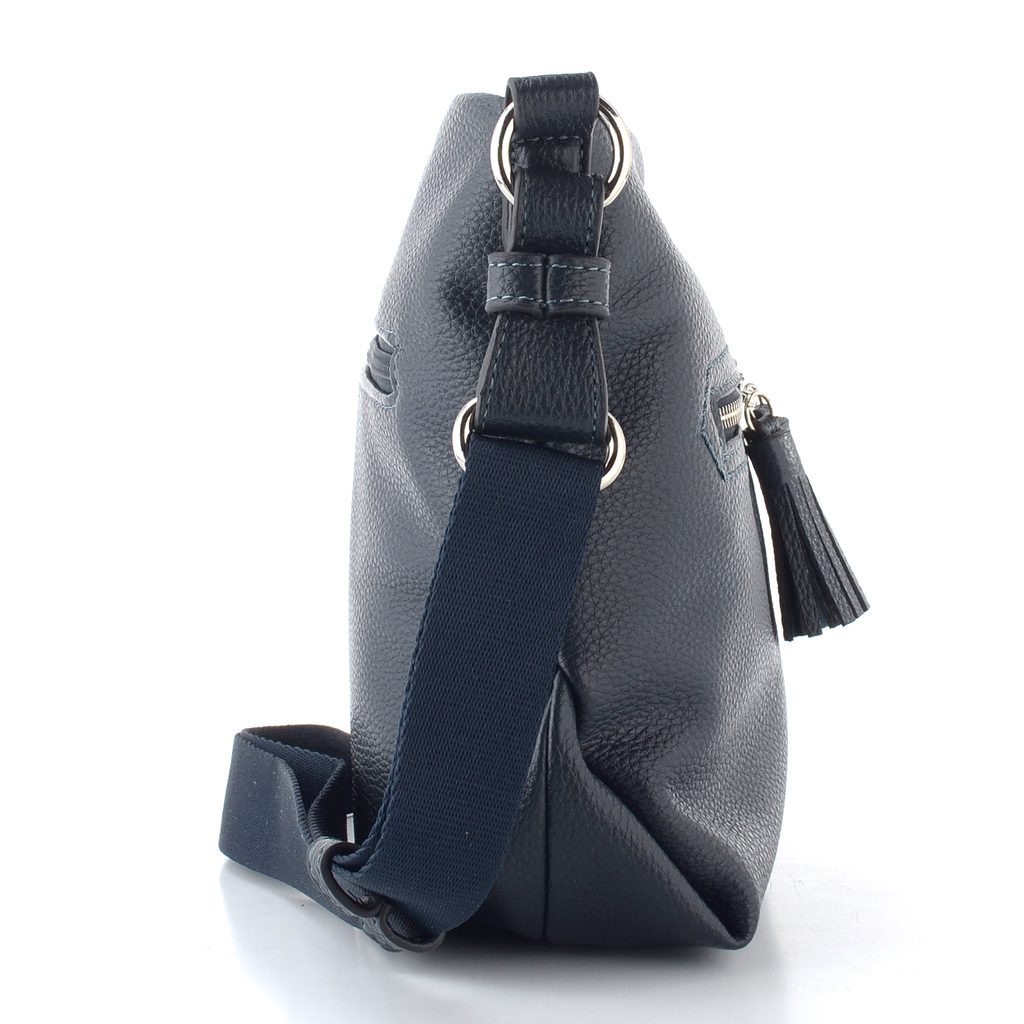 Dámská crossbody kabelka v tmavě modré barvě s přední i zadní zipovou kapsičkou.