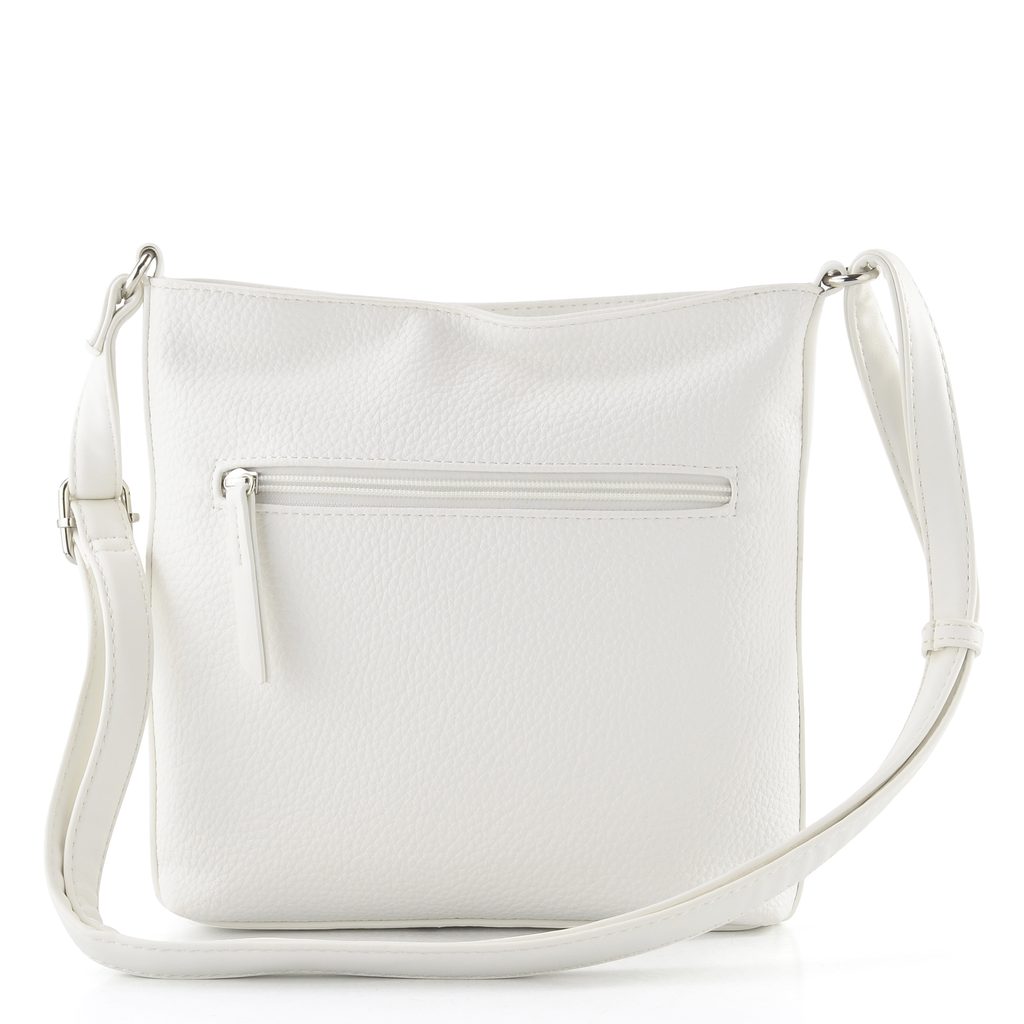 Dámská crossbody kabelka v jednoduchém střihu a bílé barvě, s nastavitelným popruhem.