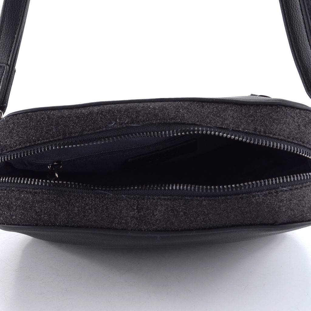 Menší dámská crossbody kabelka v jednoduchém provedení s glitter blyštivou vsadkou v místě zipu.
