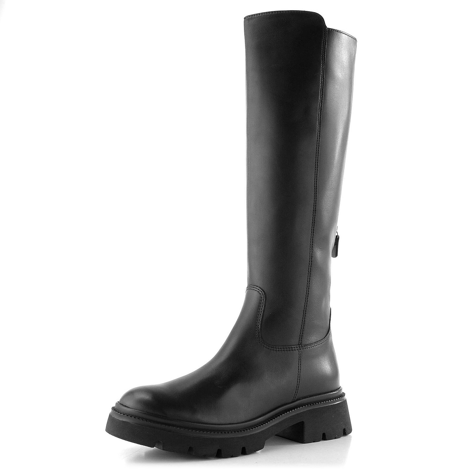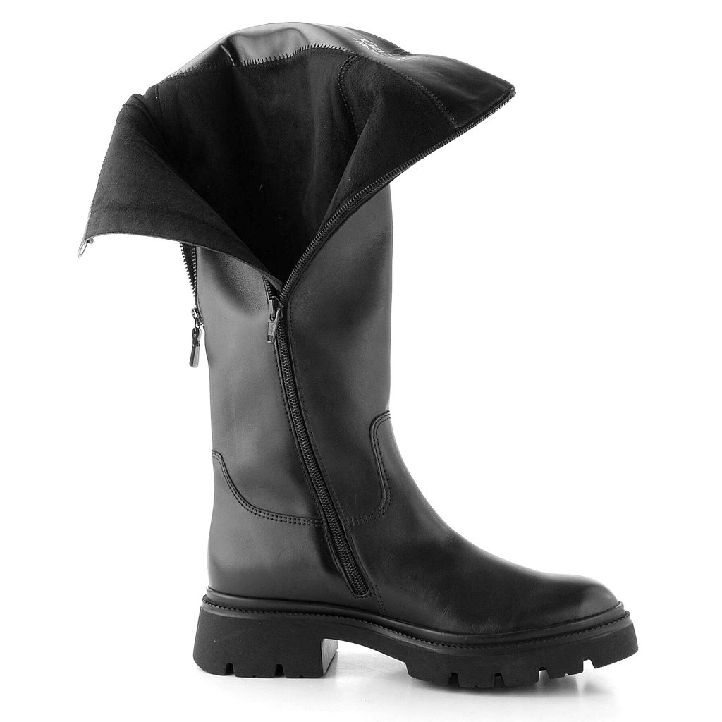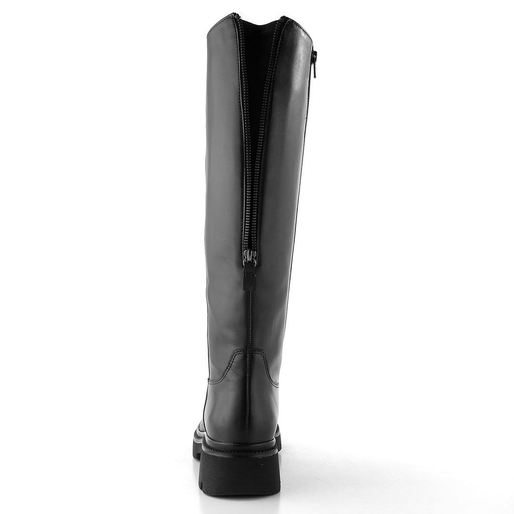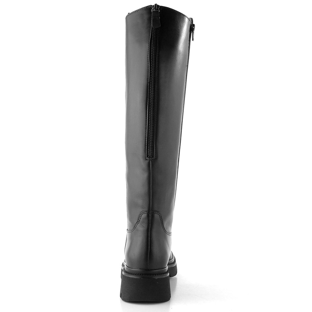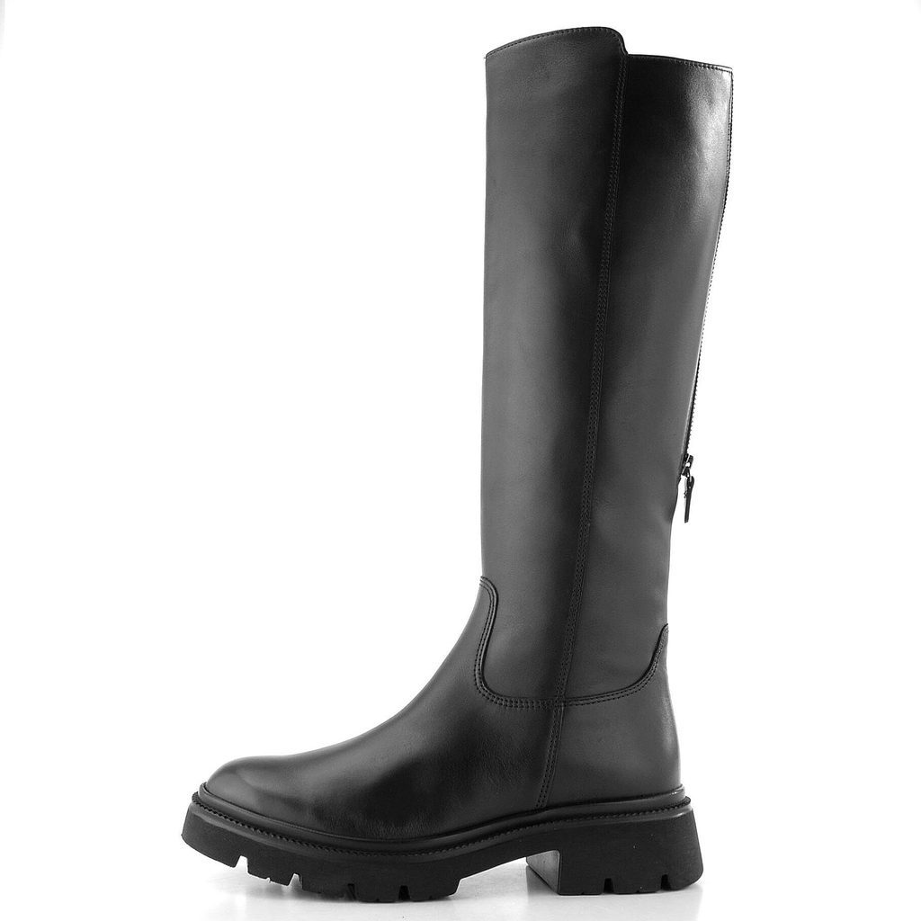 Dámské hladké kožené kozačky v černé barvě a ve velikosti M-Vario - pro standardní typ lýtka s mírnou variabilitou obvodové části.