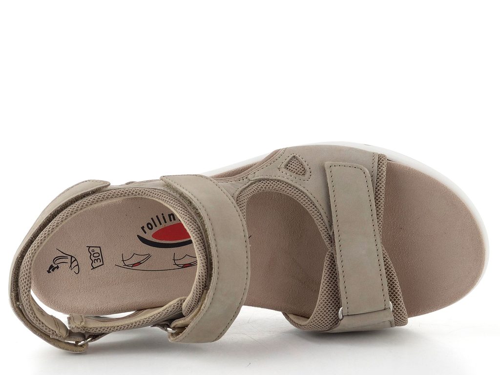 Komfortní kožené dámské sandály v šedobéžové barvě s vyjímatelnou vložkou.