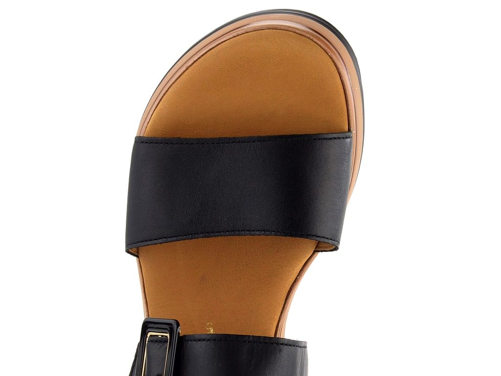 Komfortní kožené dámské sandály v černé barvě na vysoké platformě.
