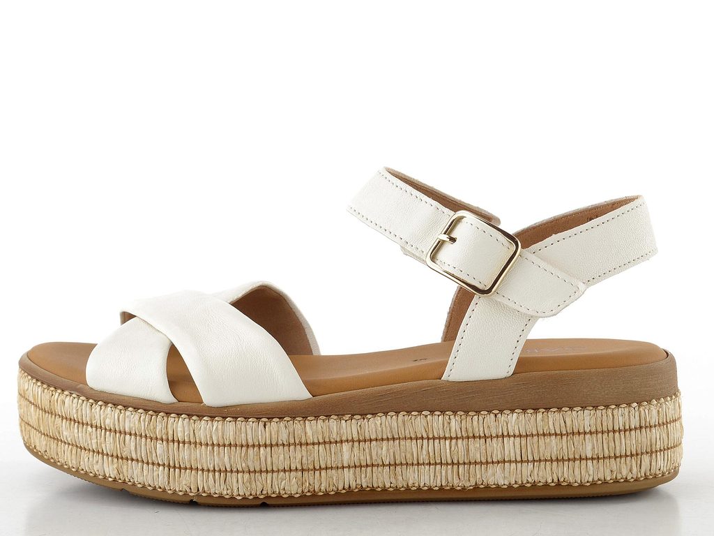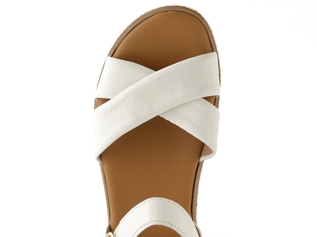 Komfortní kožené dámské sandály ve smetanově bílé barvě na vysoké platformě.
