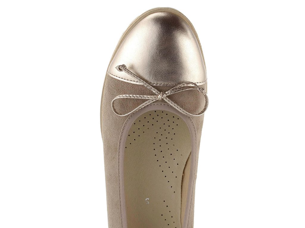 Dámské béžové semišové baleríny s metalickou špičkou, patou a pohodlnou hrubší podešví.