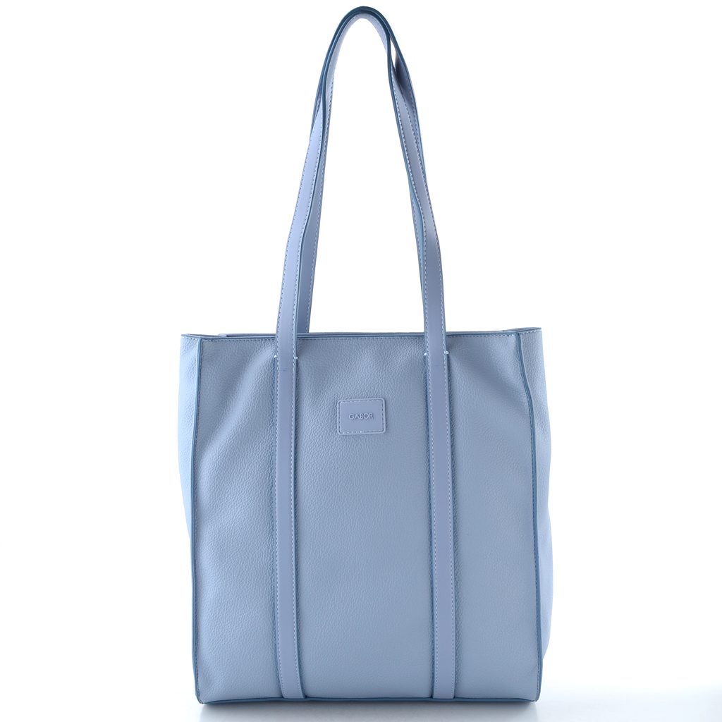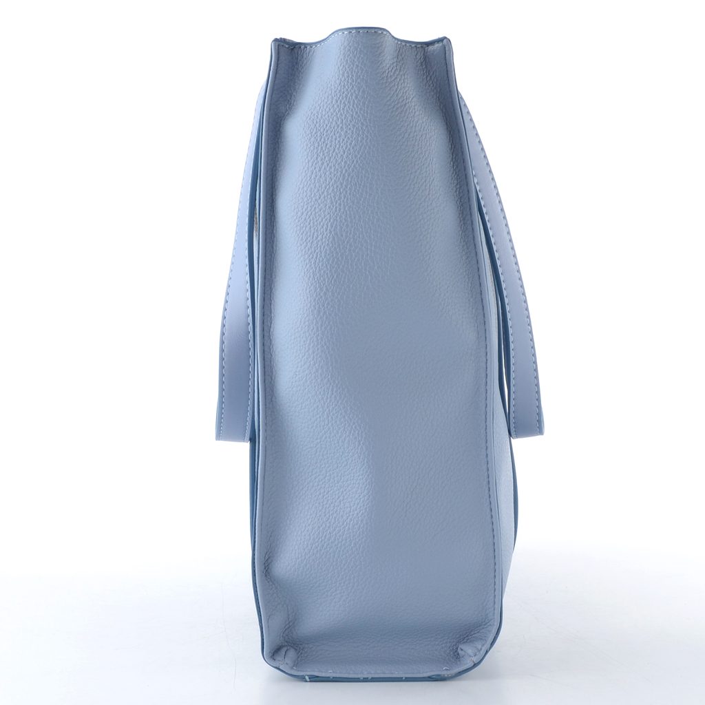 Prostorná dámská kabelka v jednoduchém střihu a světle modré barvě.