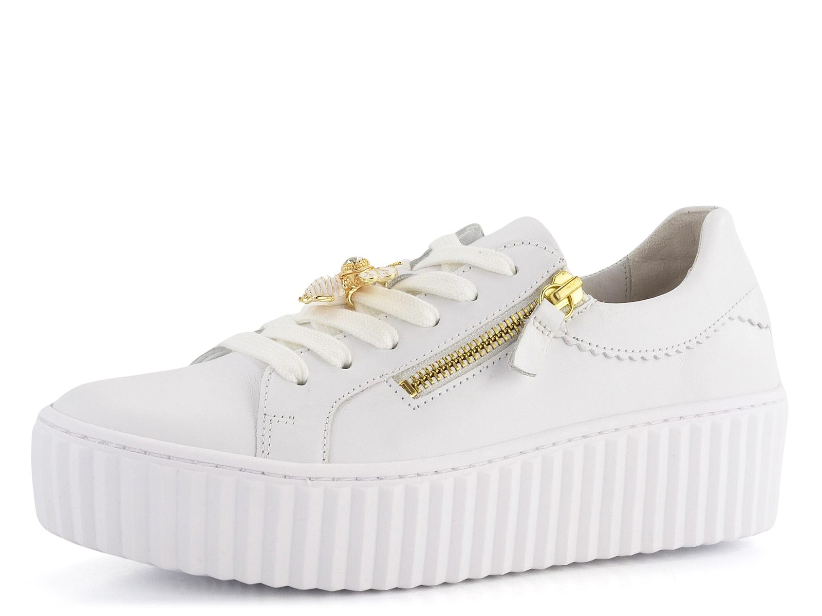 Dámské módní tenisky na vysoké platformě s ozdobným čmeláčkem na tkaničkách od značky Gabor.