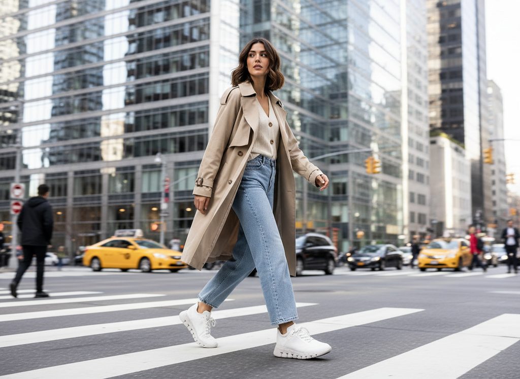 Dámské textilní tenisky ve smetanově bílé barvě, na vysoké, extra ohebné platformě s hrubým vzorkem.
