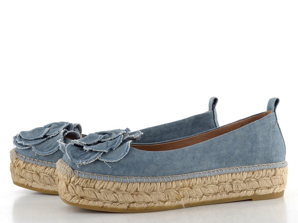 Jedinečné dámské plátěné balerínky se zdobenou špičkou a vysokou jutovou platformou.