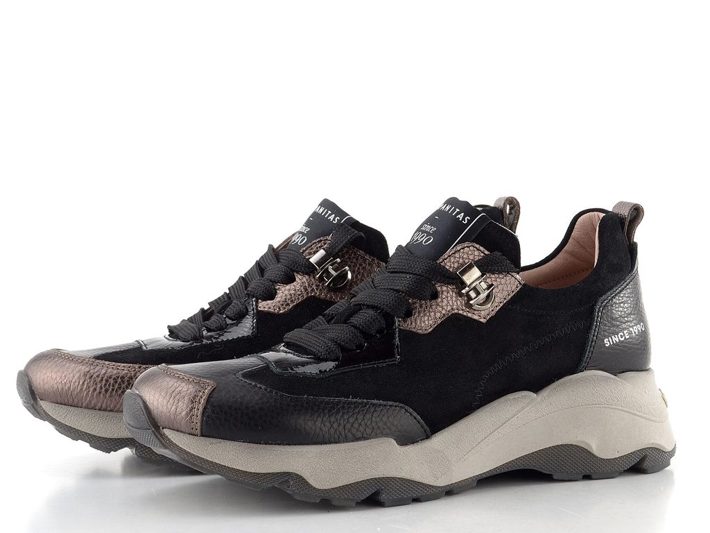 Jedinečné dámské kožené tenisky v černé barvě s metalickými doplňky od španělské značky Hispanitas.