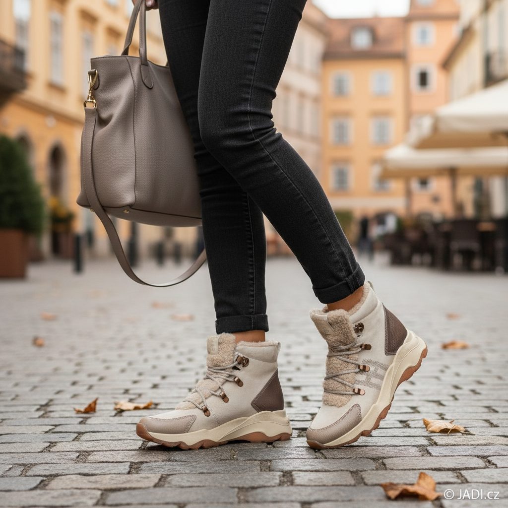 - uvnitř podšívka ze speciálního technického mikrovlákna (veganské, ekologické, 100% prodyšné, termoregulační a odolné), kotníkový lem i zevnitř podšit beránkem