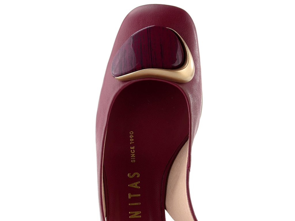 Elegantní lodičky z hladké kůže v nevšedním odstínu, s volnou patou a širokým podpatkem.