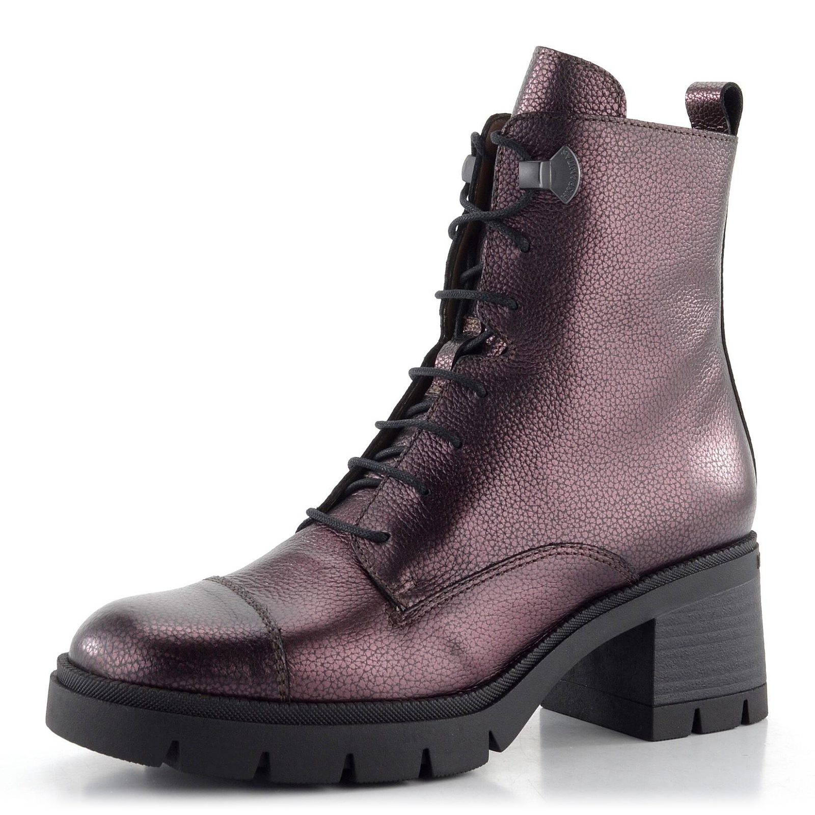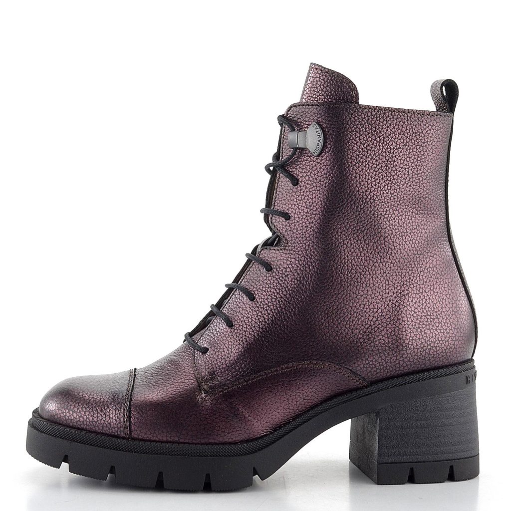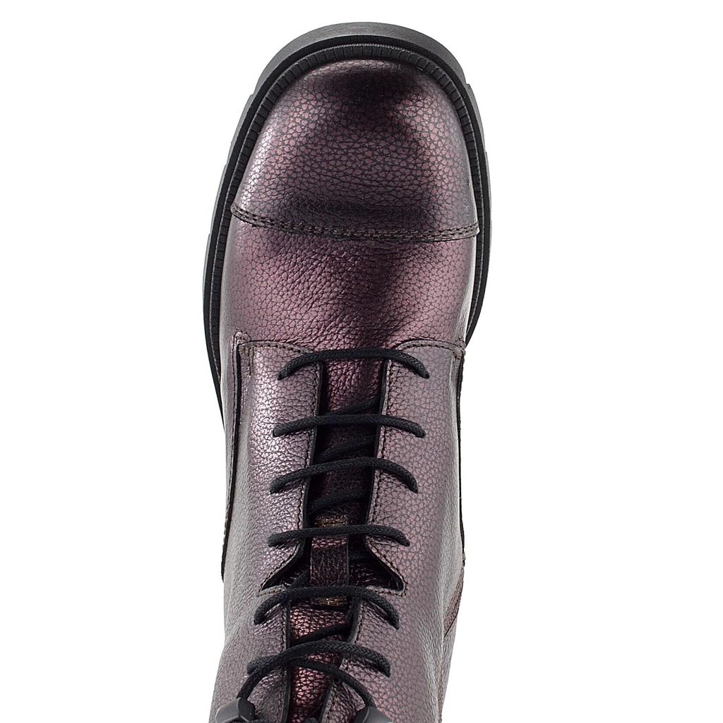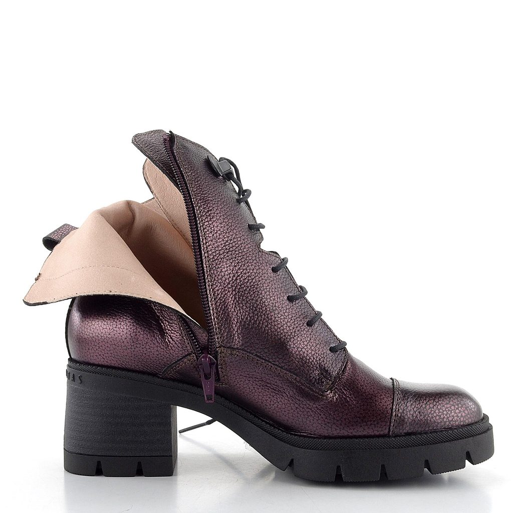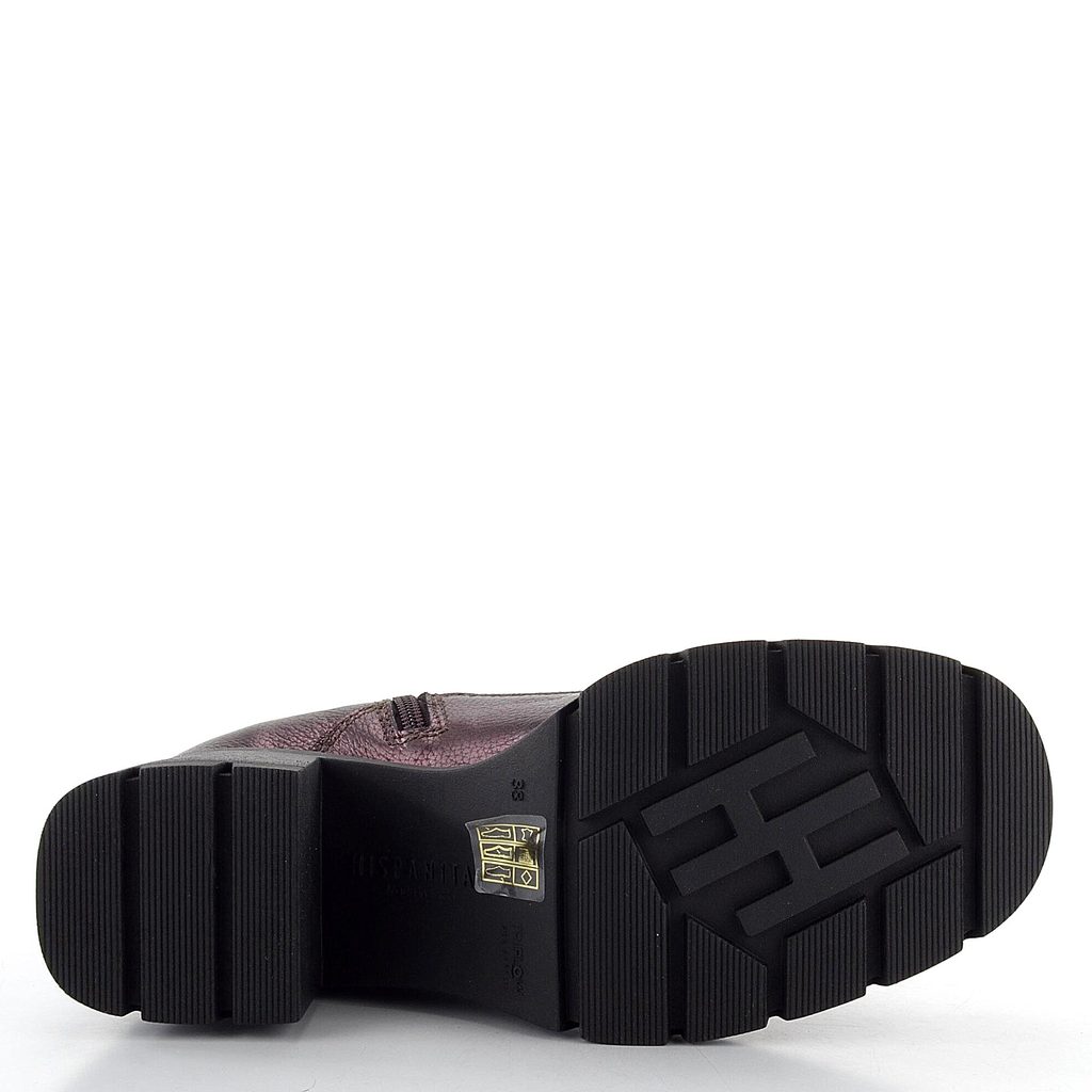 Luxusní dámský kotník v metalické bordó barvě, s hrubší podešví a hladkou vnitřní podšívkou.