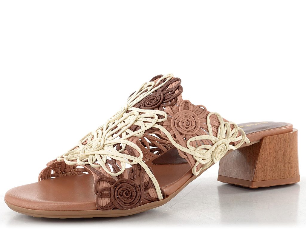 Výjimečné dámské pantofle s jemnými proužky splétanými do květinového vzoru a se širokým stabilním podpatkem.
