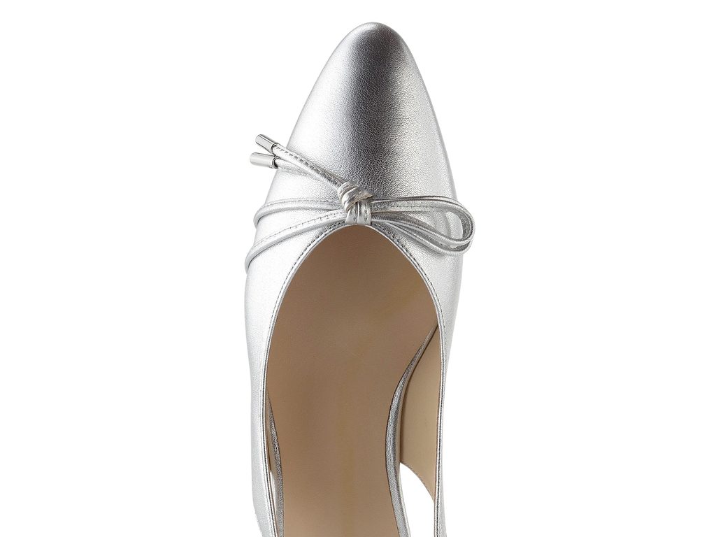 Elegantní dámské baleríny z metalické kůže s mašličkou, elegantní úzkou špičkou a volnou patou.