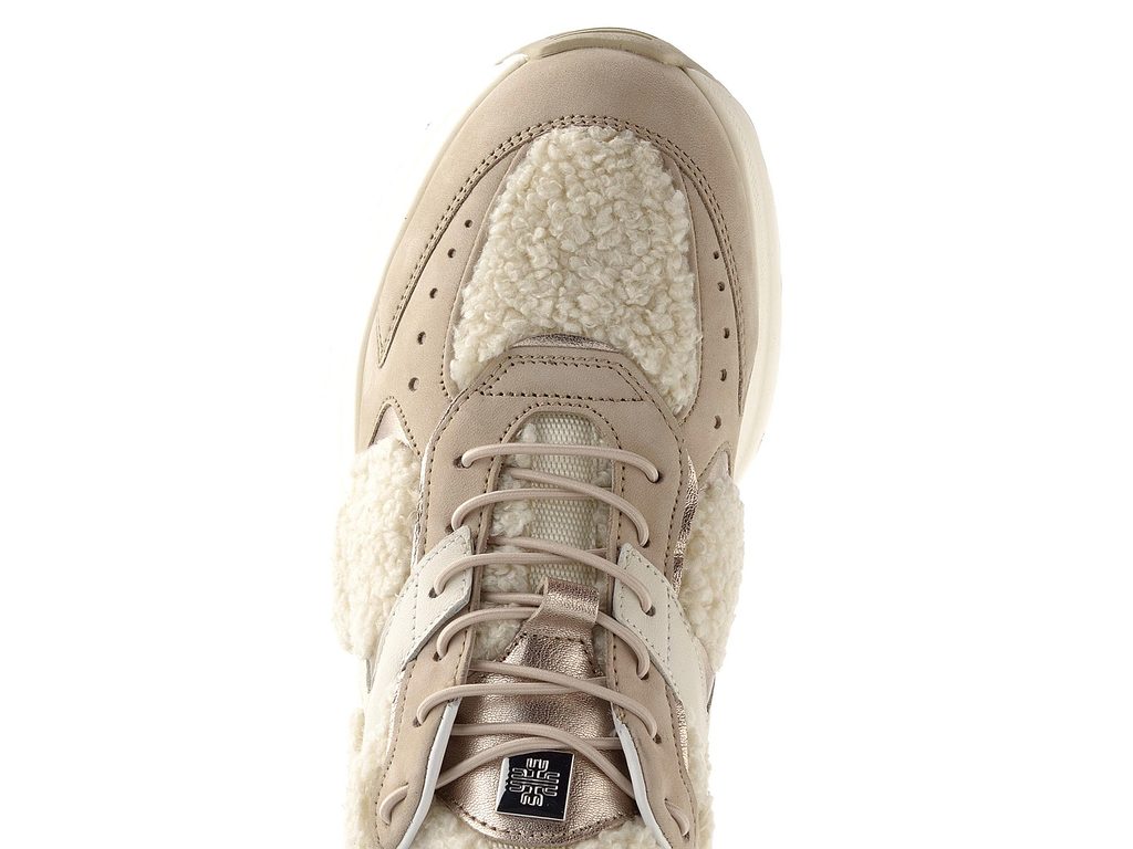 Exkluzivní dámské kožené tenisky zdobené beránkem, s pružným šněrováním a vyjímatelnou vložkou.