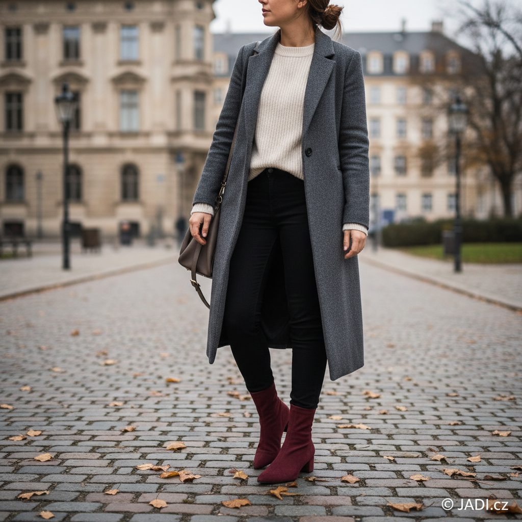 Dámský vínový kotník ze semišové kůže, s elegantní úzkou špičkou a pohodlným stabilním podpatkem.