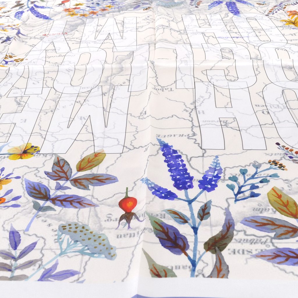 Luxusní hedvábný šátek s potiskem lučních květin.