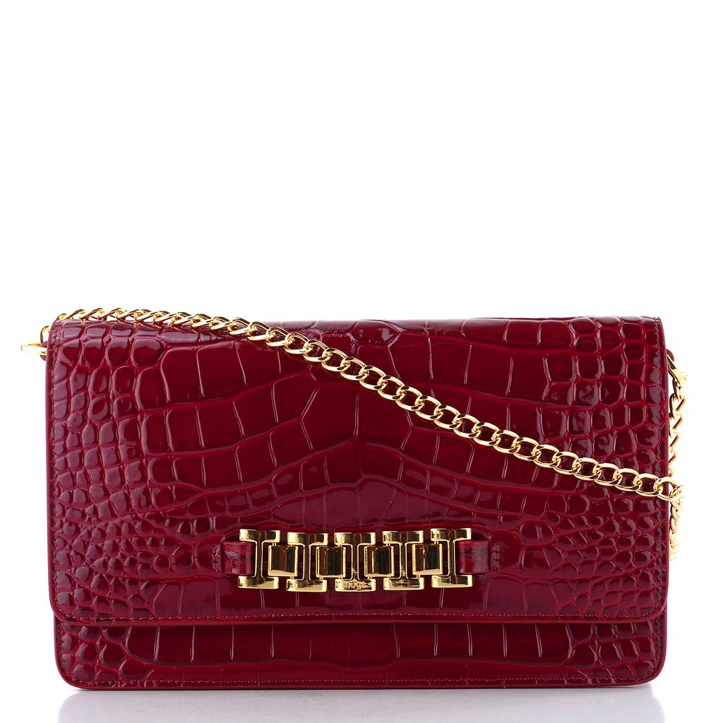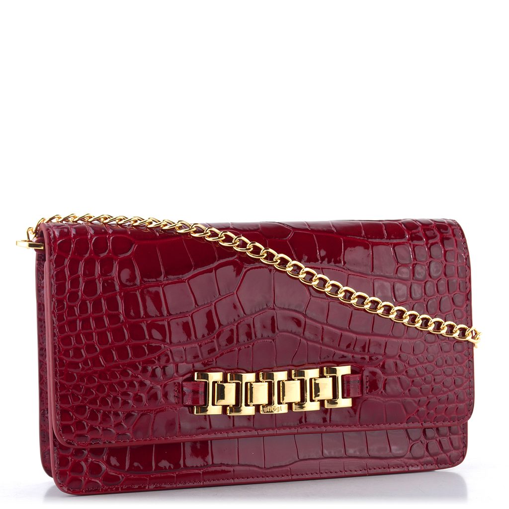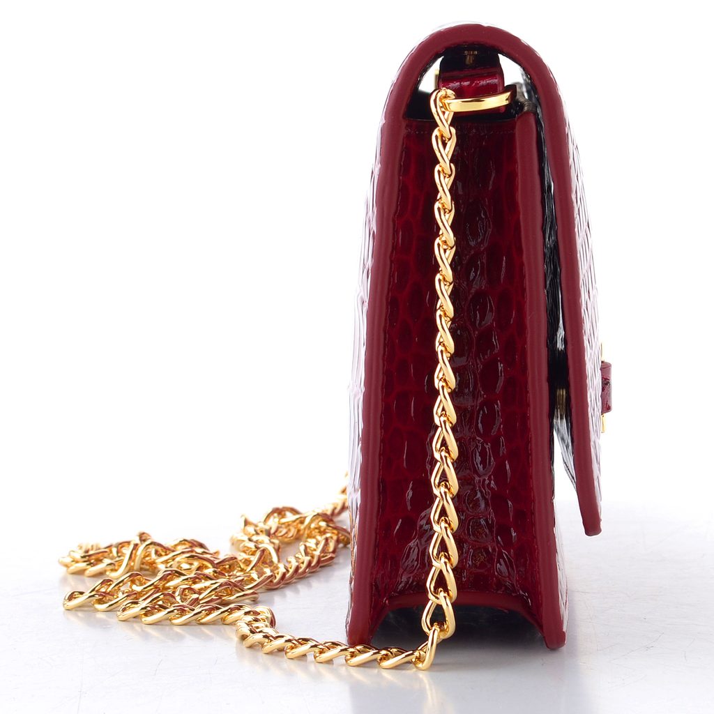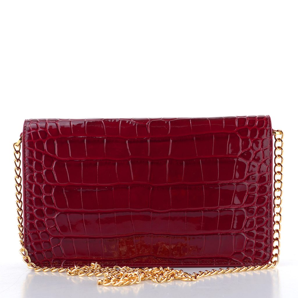Luxusní dámské psaníčko z lakované kroko kůže ve vínově červeném odstínu.