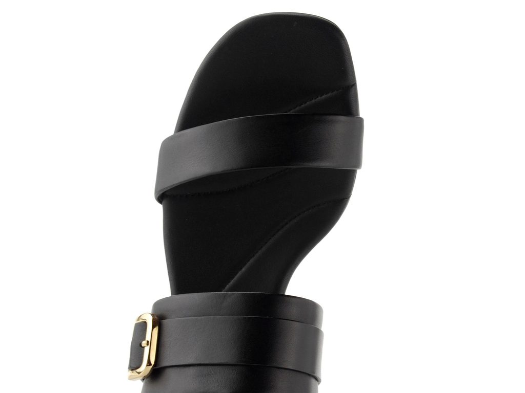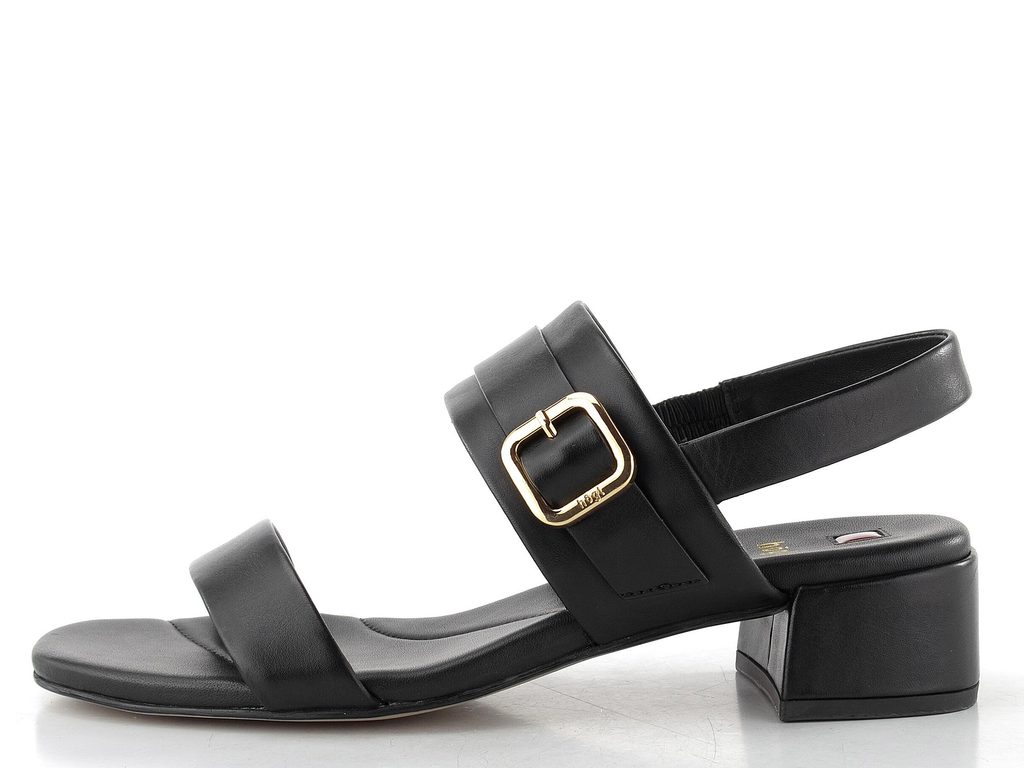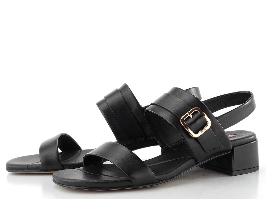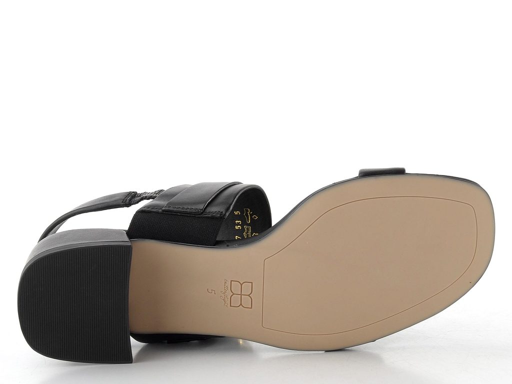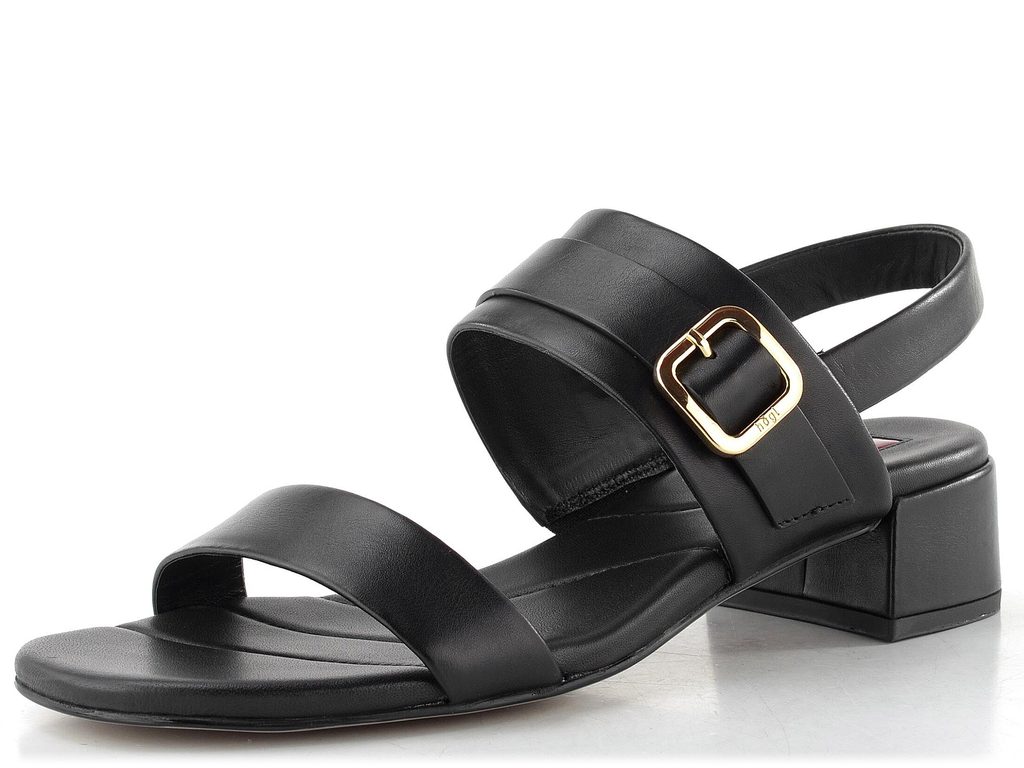 Dámské sandály z hladké kůže ve černé barvě s pružným patním páskem a nízkým podpatkem.