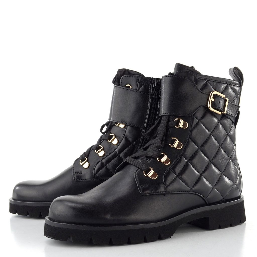 Dámský luxusní kotník z jemné kůže prošívané do vzoru, s elegantní sponou a s postranním zipem pro snadné obutí.