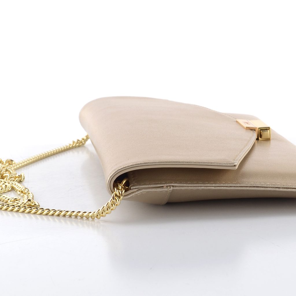 Dámské kožené psaníčko v metalické bronzové barvě s přídavným řetízkem.
