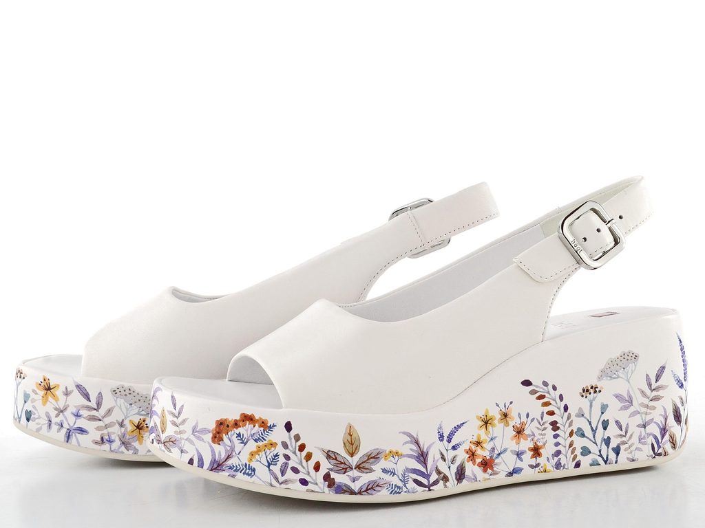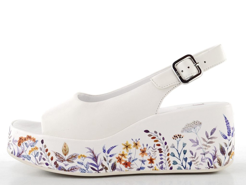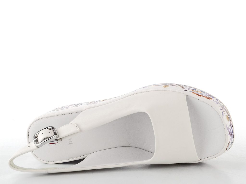 Luxusní kožené dámské sandálky v bílé barvě s barevným potaženým klínkem.