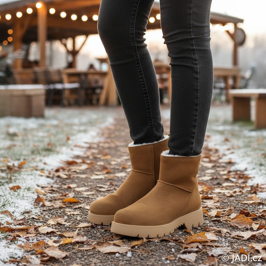 Luxusní dámský semišový kotník se zipem, teplou vlněnou podšívkou a termoizolační vložkou.