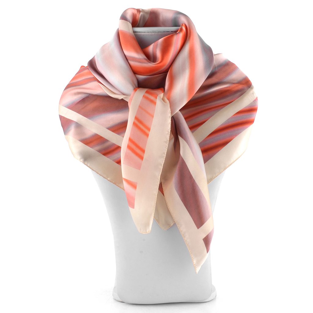 Luxusní hedvábný šátek s batikovaným vzorem v pěkné oranžovo-červené barevné kombinaci.