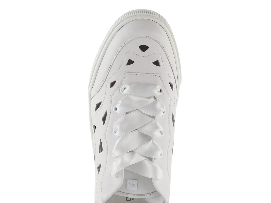 Luxusní kožené tenisky v bílé barvě s prořezávaným vzorem na svršku a saténovými tkaničkami.