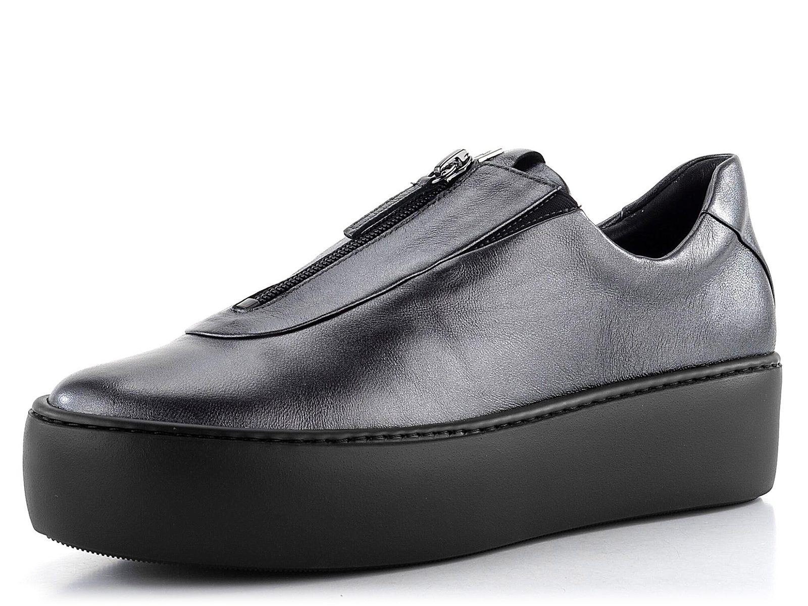 Luxusní kožené polobotky v metalické šedé barvě a s módním zipem místo šněrování.