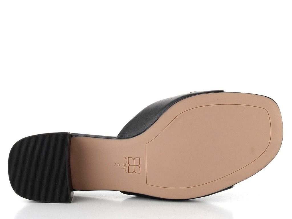 Dámské luxusní celokožené pantofle s prošívanou měkkou stélkou a širokým potaženým podpatkem.