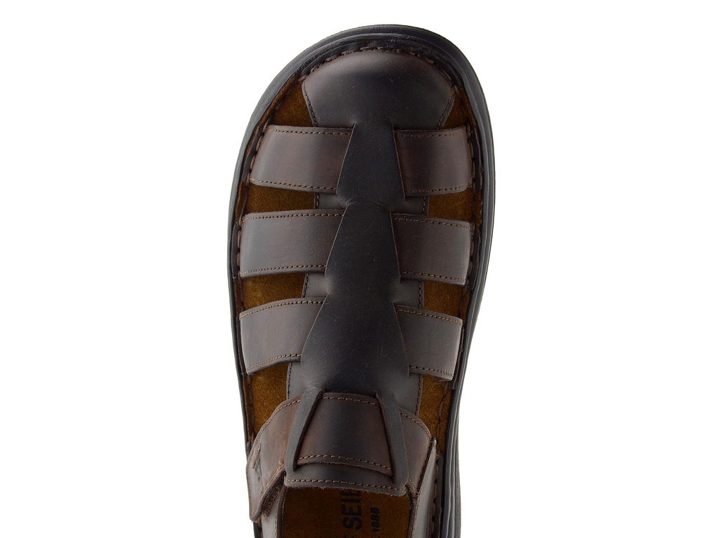 Pánské kožené páskové sandály s uzavřenou špičkou a zapínáním na suchý zip.