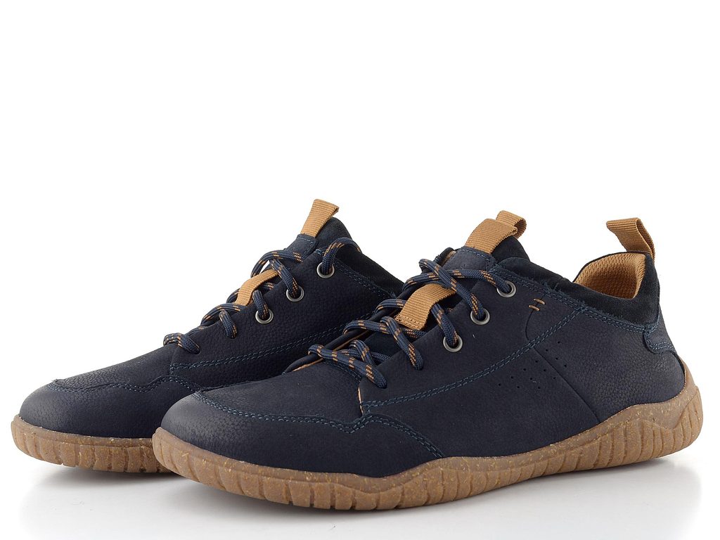 Pánské nubukové polobotky na šněrování, v tmavě modré barvě a komfortním barefoot provedení.