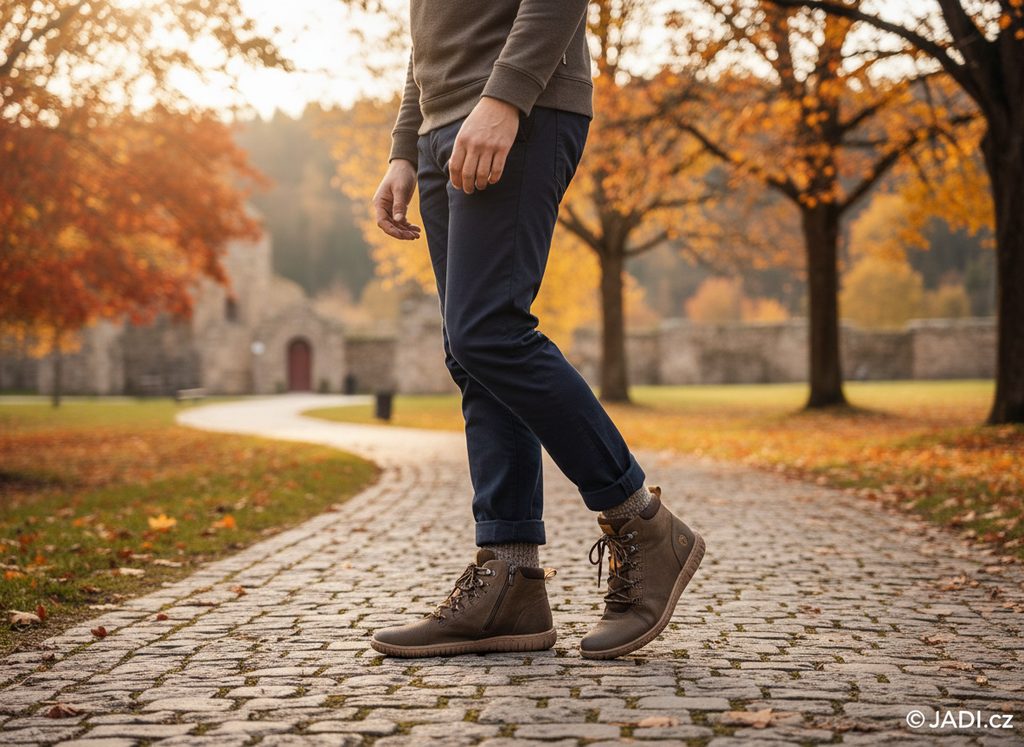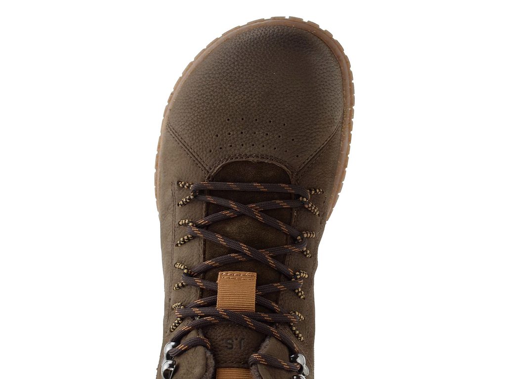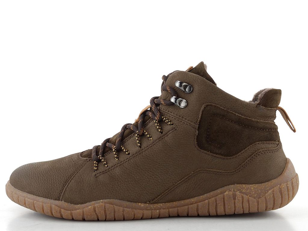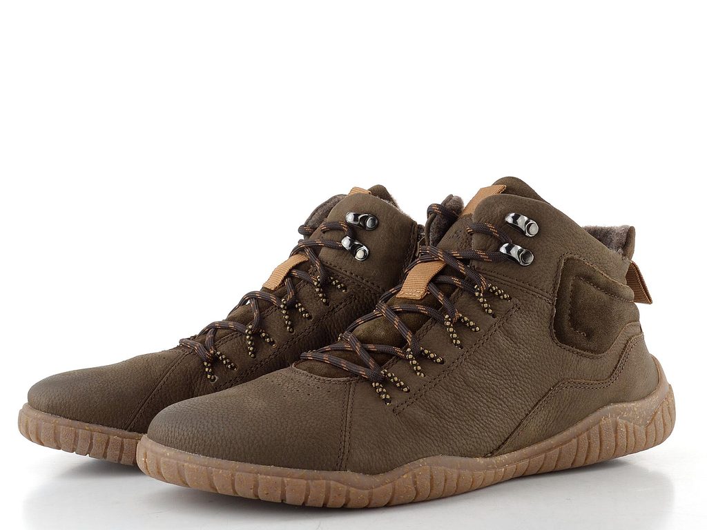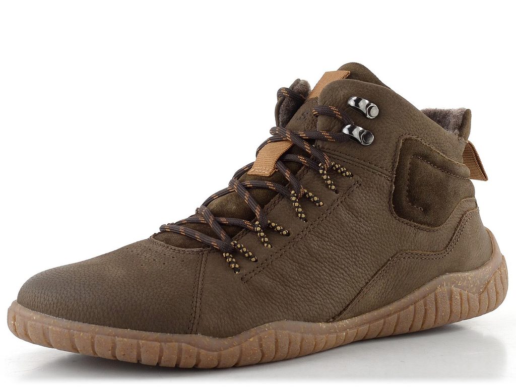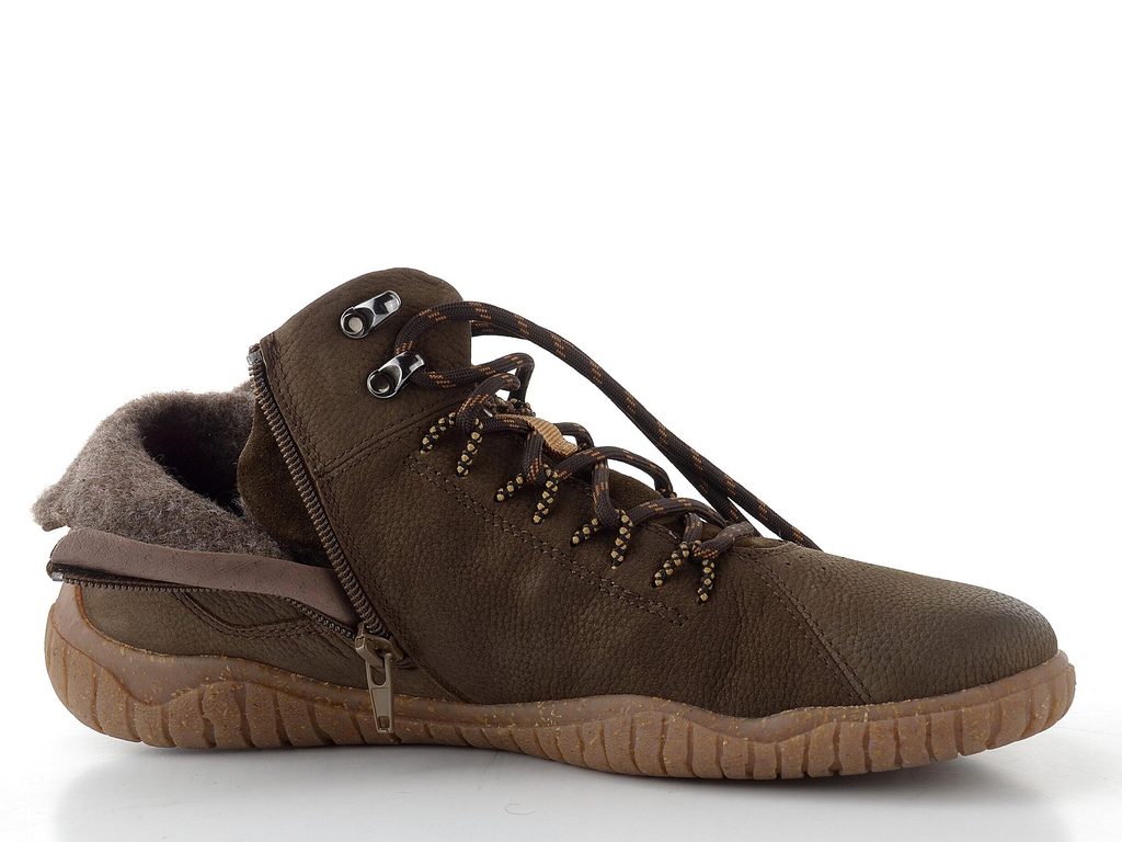 Pánský, mírně vyteplený kotník na šněrování s funkčním postranním zipem a v komfortním barefoot provedení.