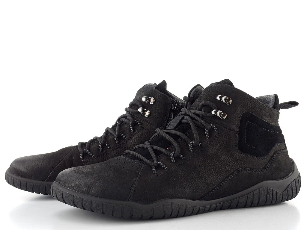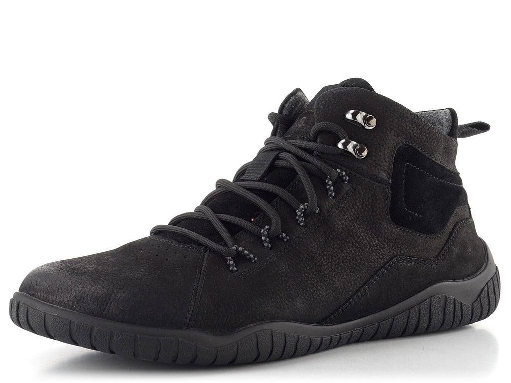 Pánský, mírně vyteplený kotník na šněrování s funkčním postranním zipem a v komfortním barefoot provedení.