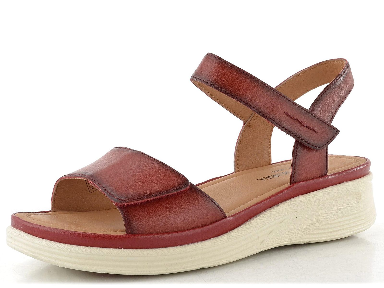 Dámské komfortní celokožené sandály v červené barvě s upínacími pásky na suchý zip.