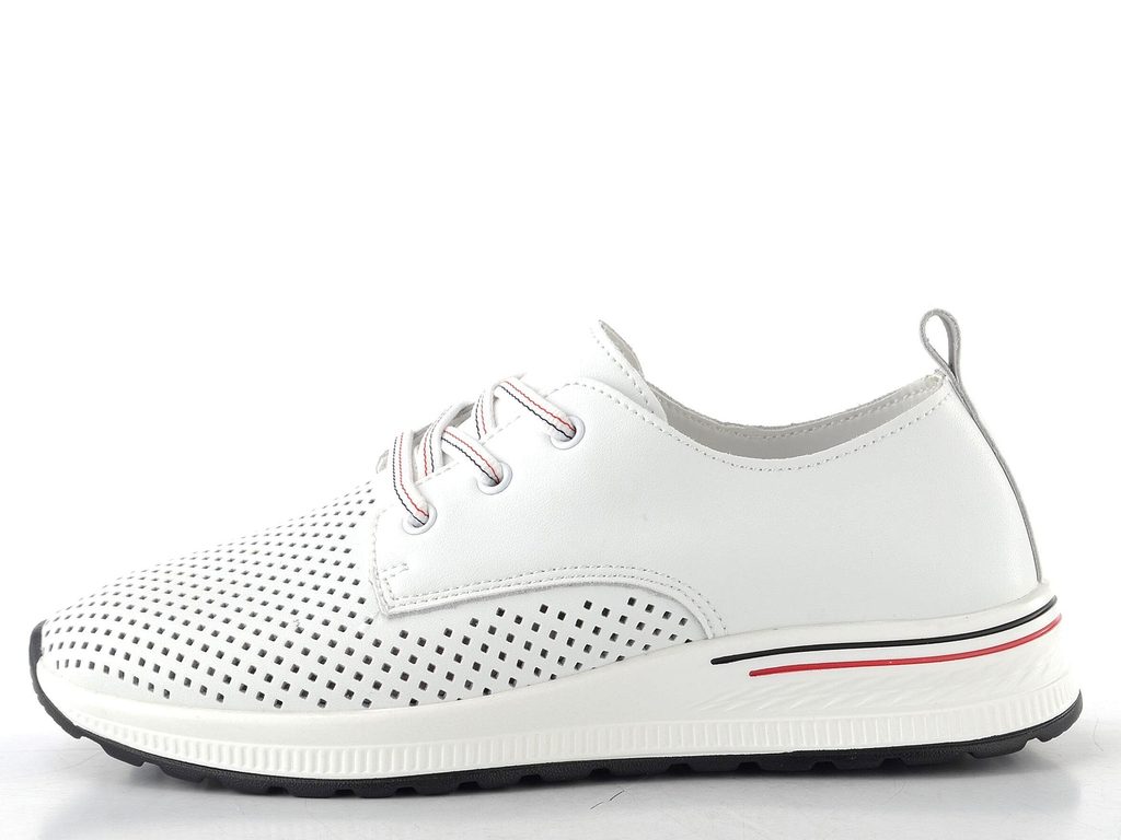 Dámské šněrovací polobotky z poddajné hladké kůže s jemnou perforací na svršku a vyjímatelnou vložkou.