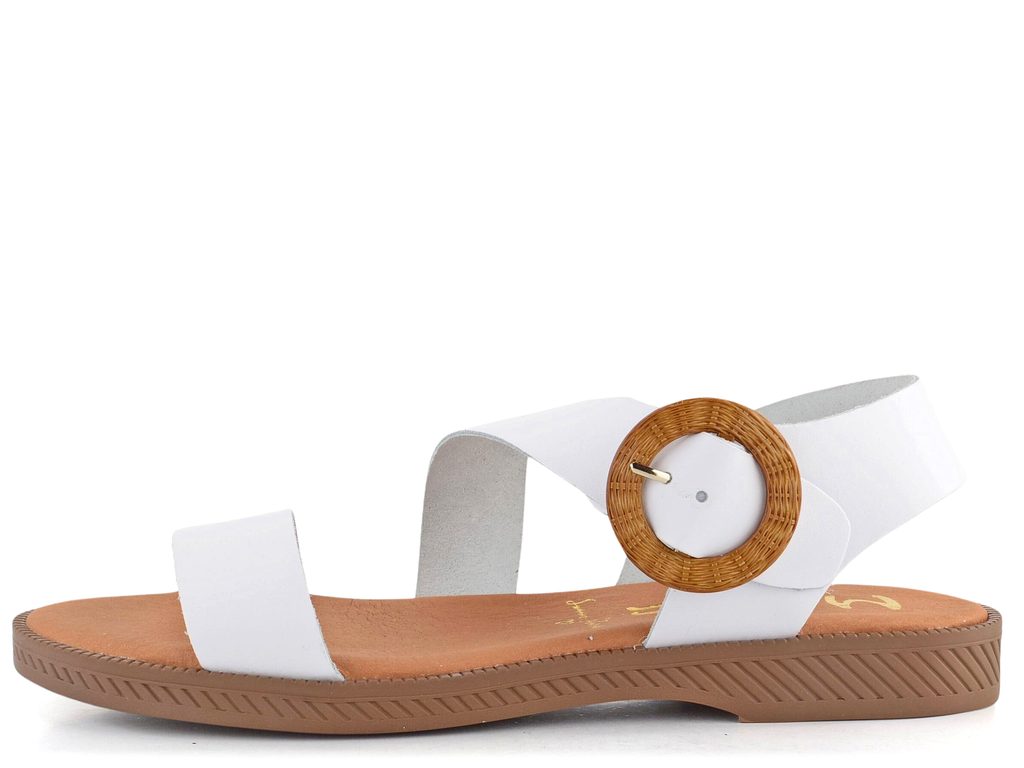 Jednoduché dámské kožené sandálky v bílé barvě s ozdobnou sponou.