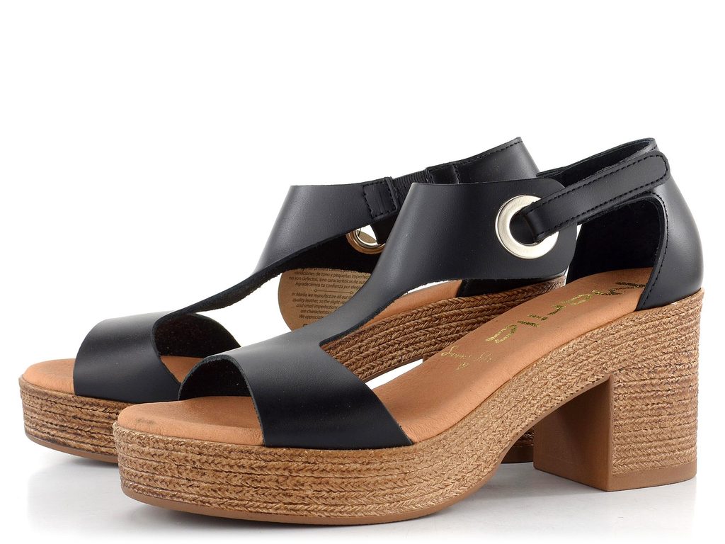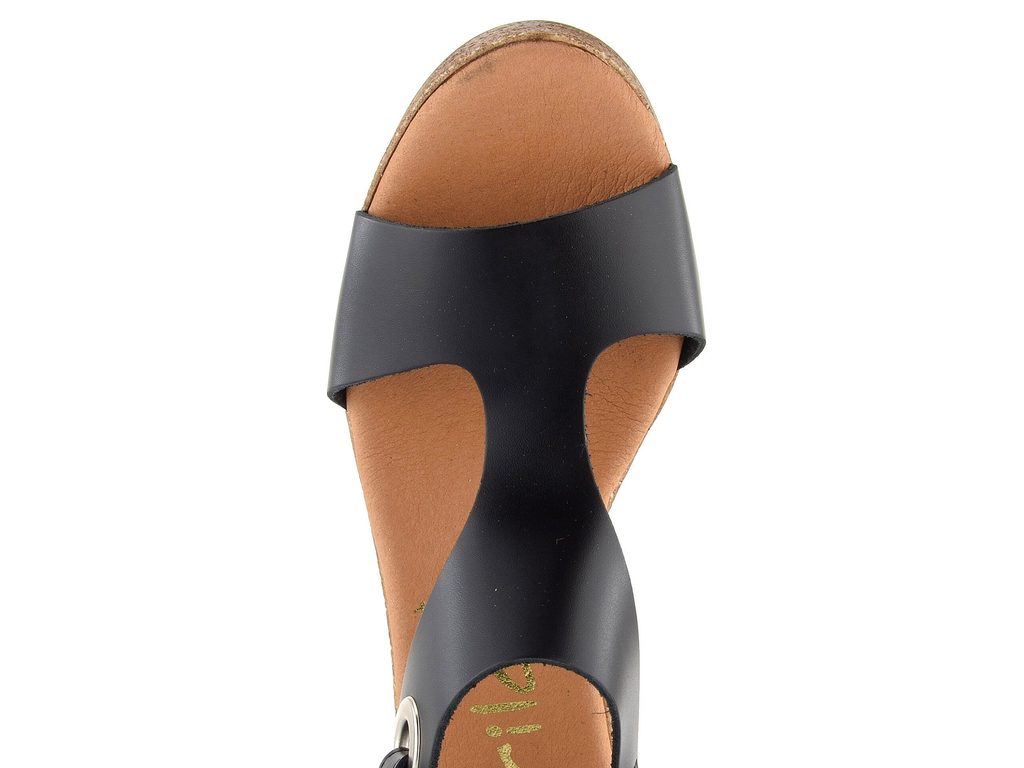 Dámské kožené sandály v černé barvě, na vysoké platformě se širokým podpatkem.