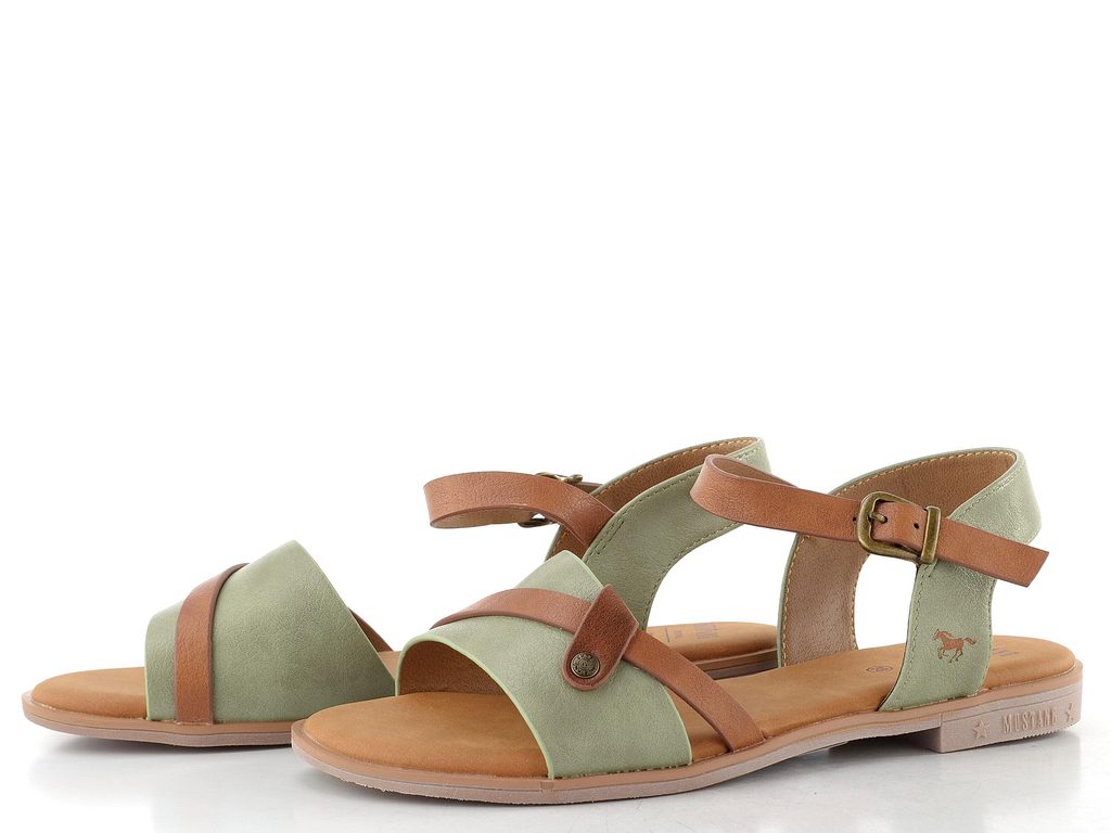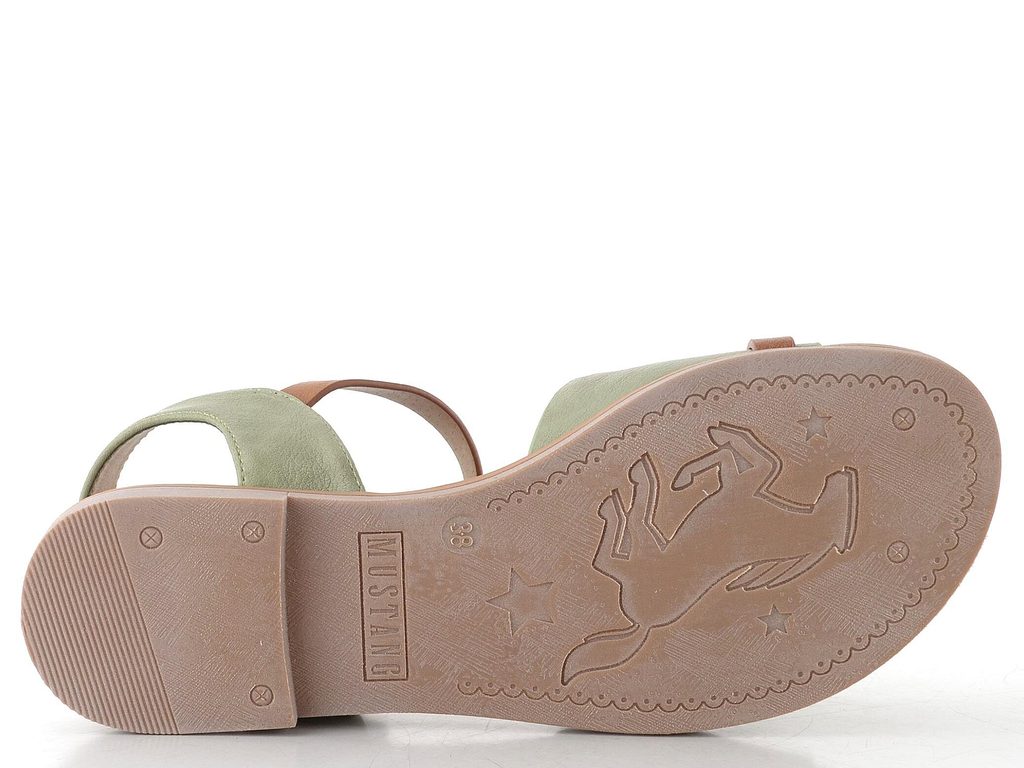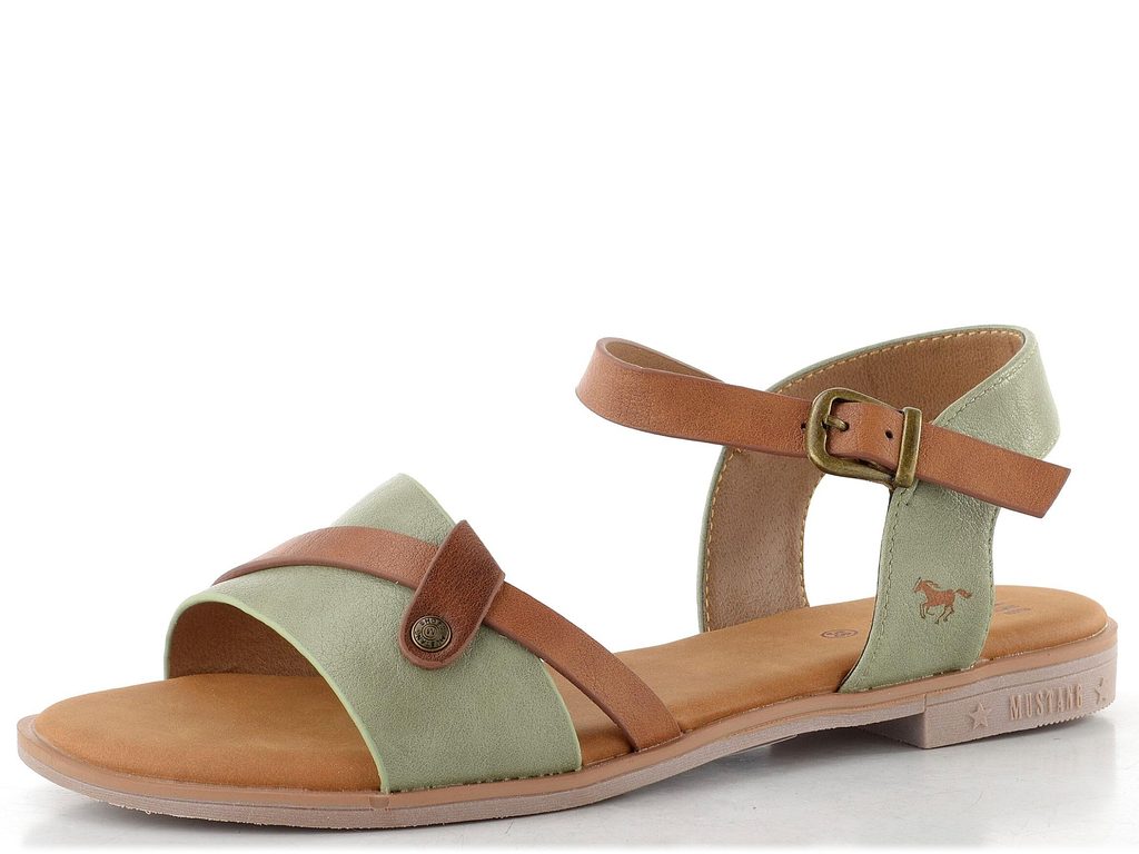 Dámské sandály v zeleno-hnědé barevné kombinaci a osobitém střihu od značky Mustang.