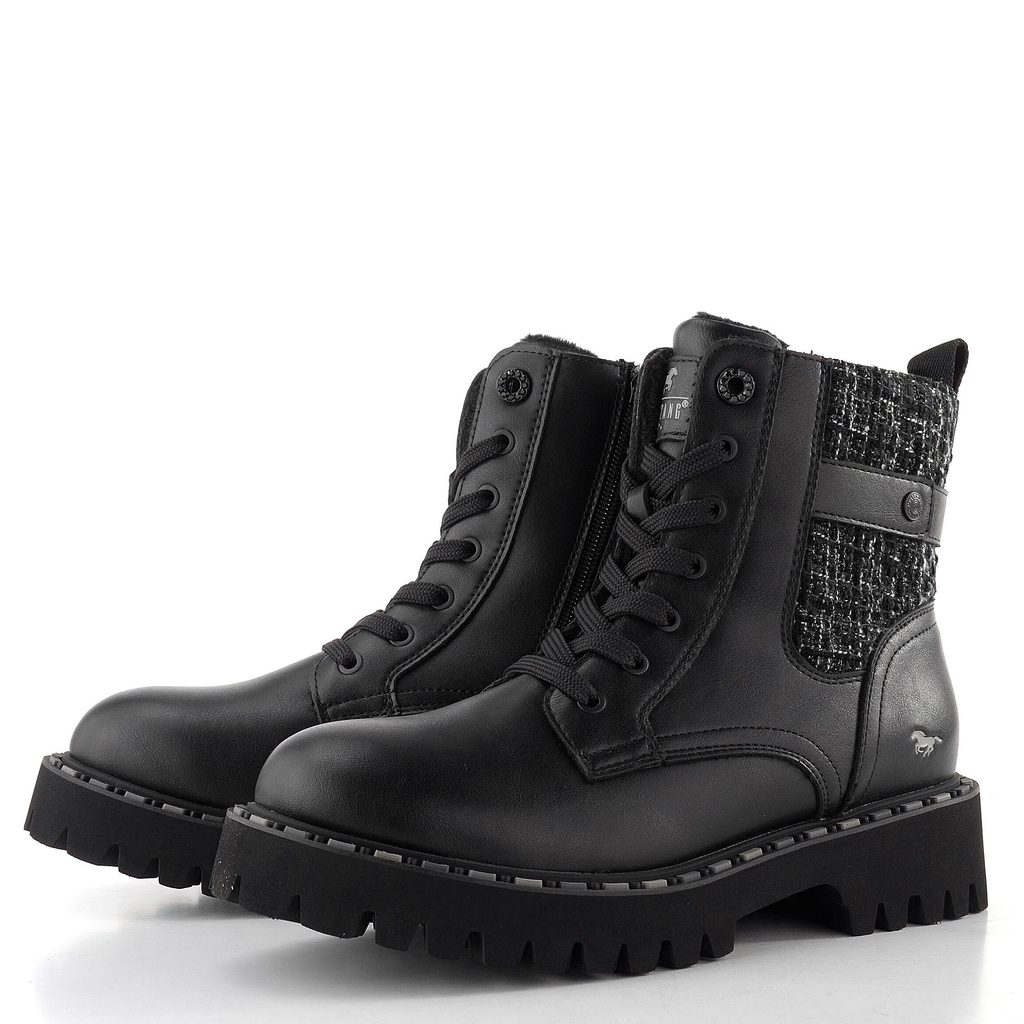 Mustang šněrovací kotník na hrubé podešvi black 15M0302007, cena: 2 099 Kč