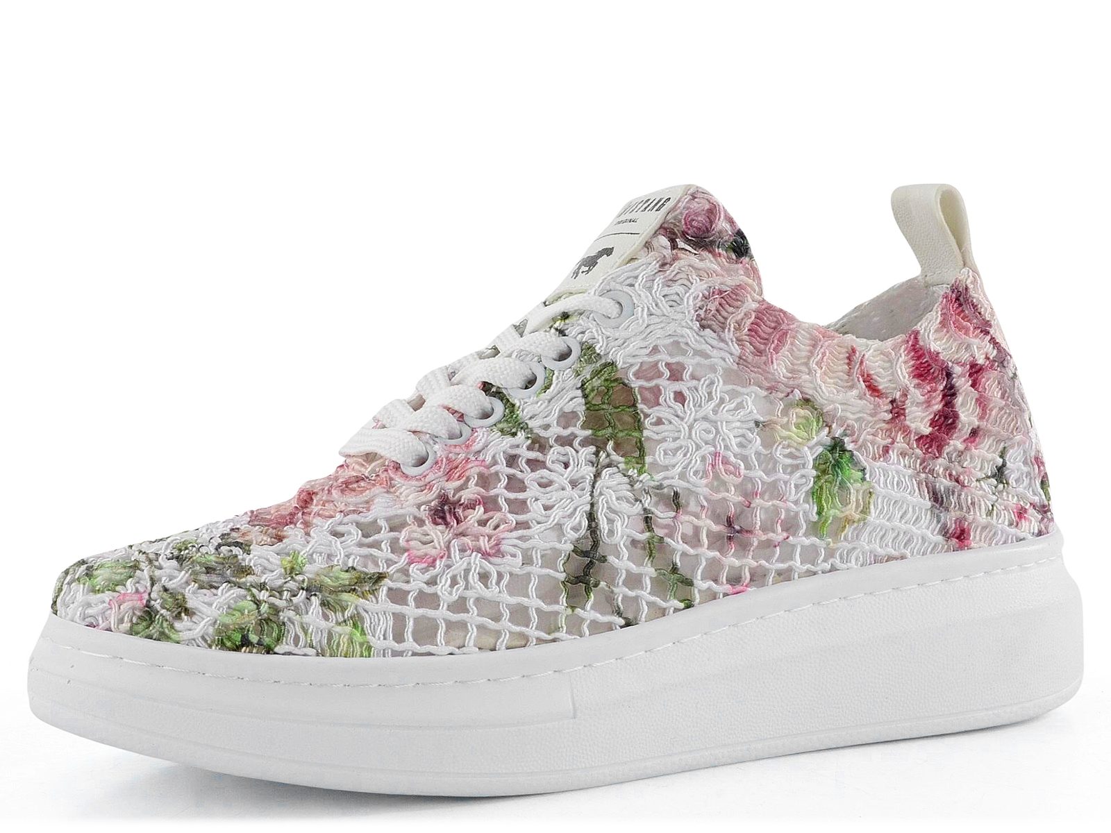 Dámské šněrovací tenisky na platformě, z prodyšné krajky s barevným vzorem.