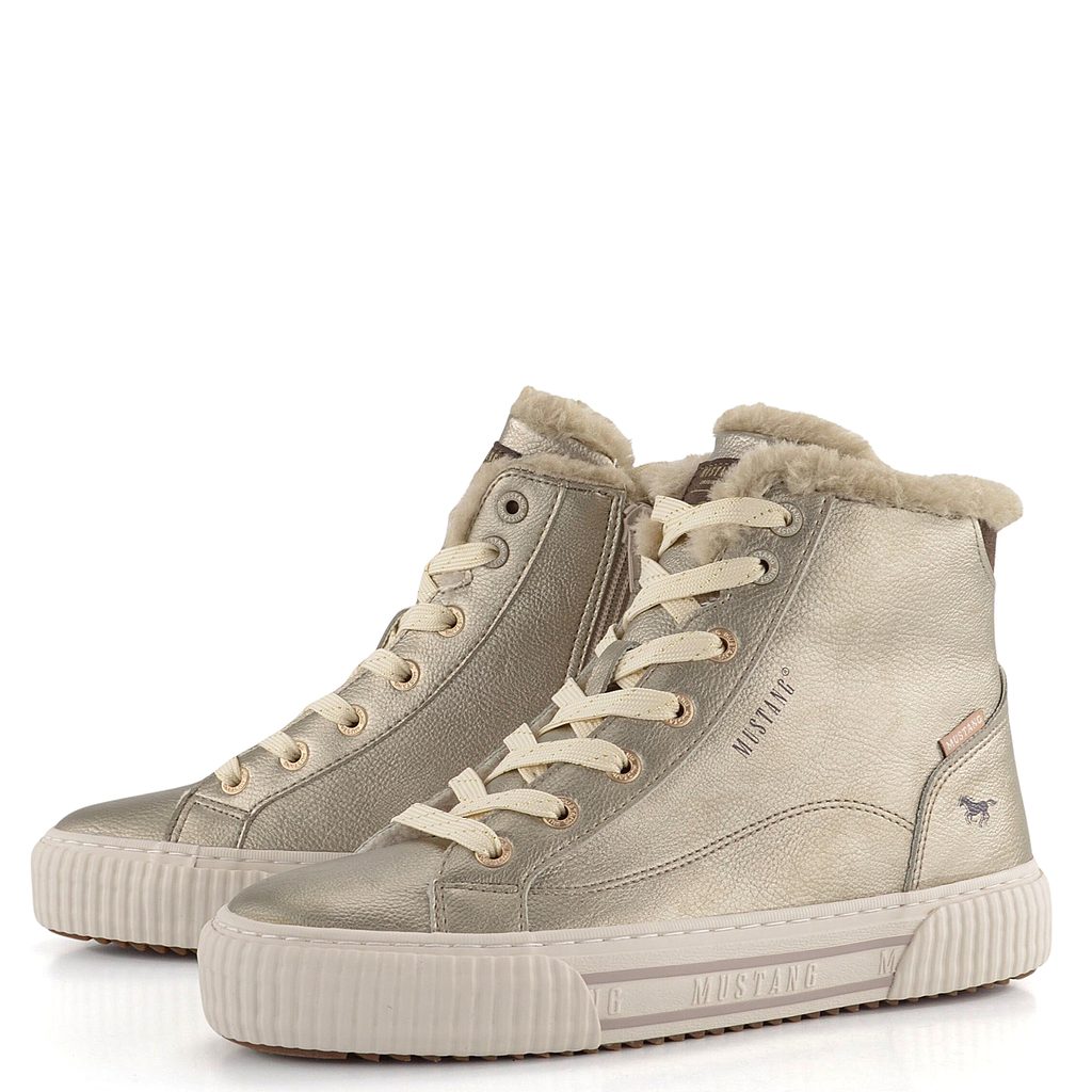 Mustang vyteplený šněrovací kotník na platformě Champagner 1442-602-480