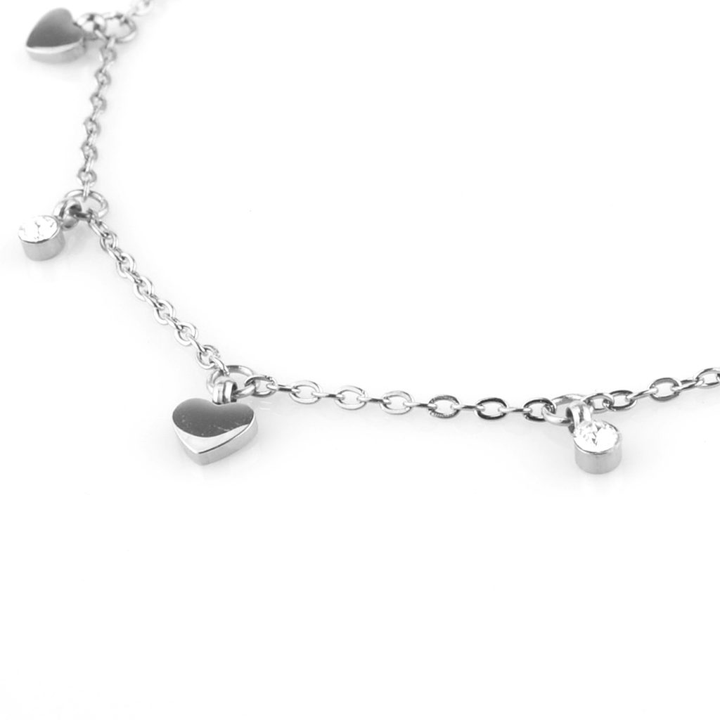 Dámský ocelový náramek s přívěsky srdíček a kulatých krystalů Swarovski.