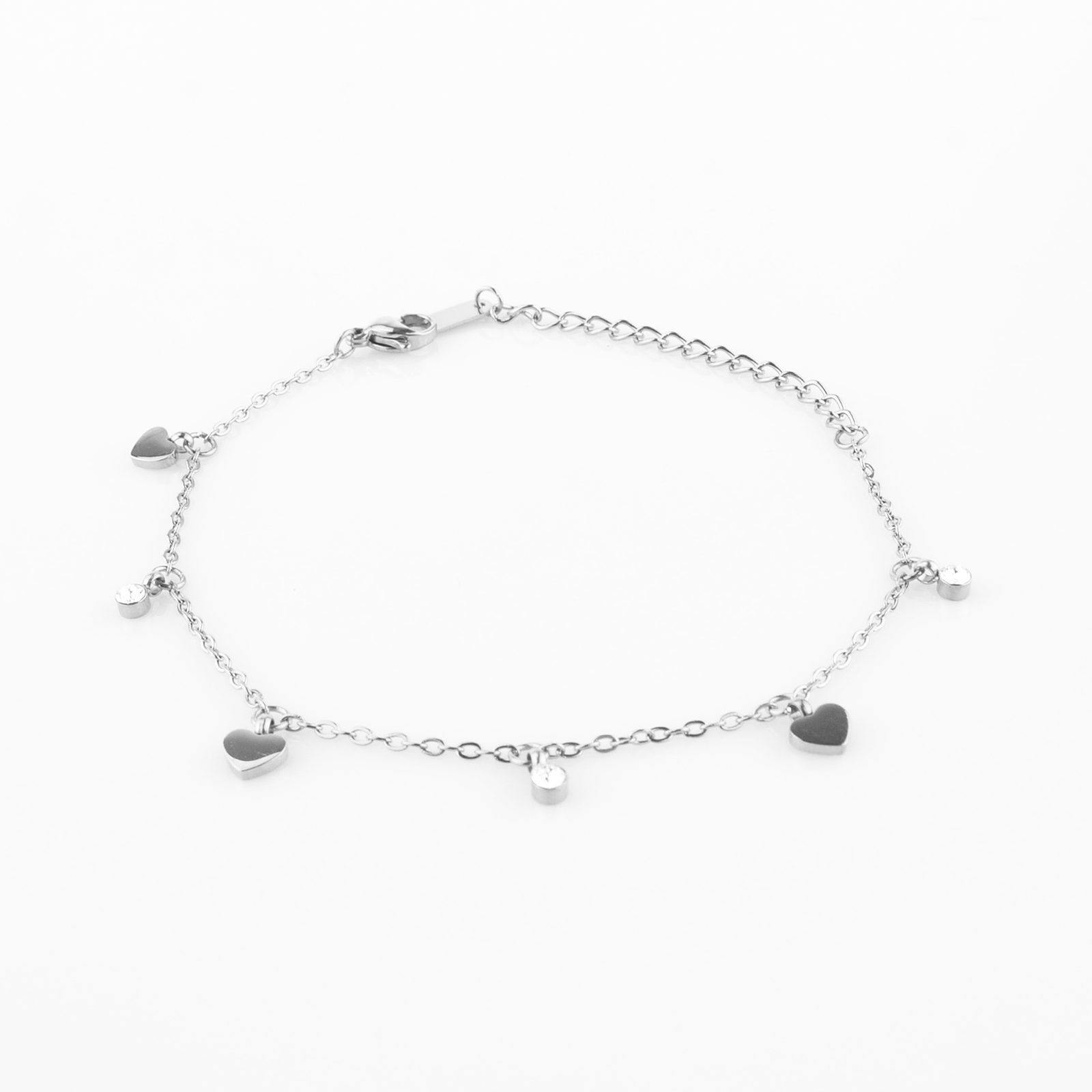 Romantický náramek s ověsy drobných srdíček a čirých krystalů Swarovski.