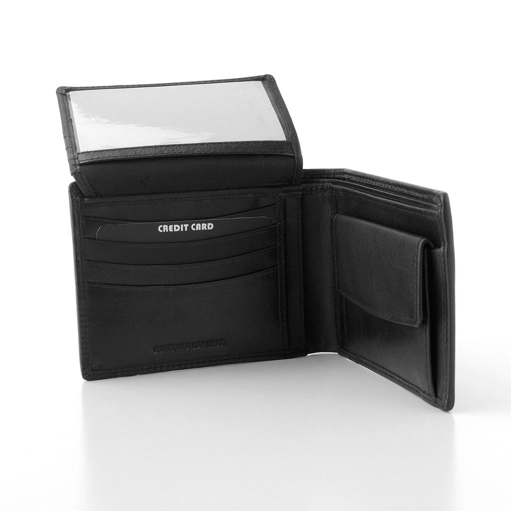 Luxusní pánská kožená peněženka v černé barvě s vnitřní výklopnou částí.