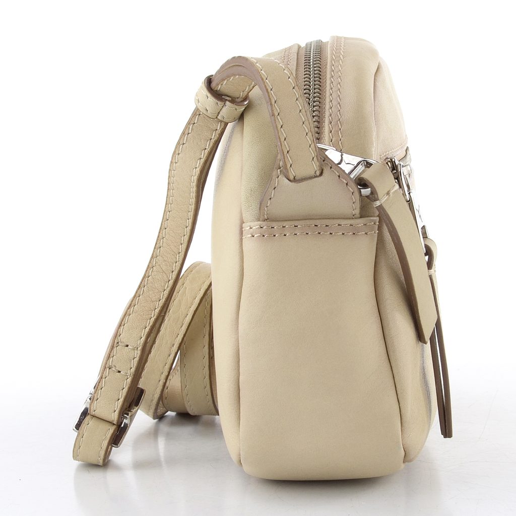 Originální dámská crossbody kabelka malého střihu v krémové barvě, s přední zipovou kapsičkou.